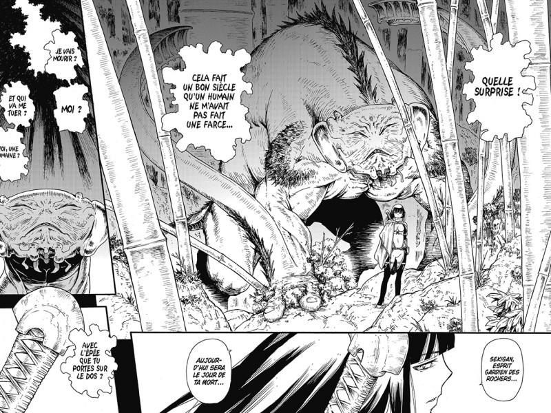 Dans ce premier volume, vous ne comprenez pas encore vraiment de quoi il s'agit, car l'action est au premier plan, les motifs de la guerrière ninja sont plutôt vagues et ne semblent pas si logiques. Toutefois, le personnage semble devenir la grande adversaire de la série, car elle a toujours une longueur d'avance sur le héros et ses compagnons et rit parfois directement à leur visage. Le principal coupable est le chaotique Buchimaru, loin d'être efficace dans cet épisode. En fin de compte, vous ne devriez pas vraiment vous demander ce qui se passe dans l'histoire, mais juste apprécier l'action sauvage et ne pas remettre en question le fond non plus, car cela n'apporte aucune réponse. Dans l'ensemble, le groupe déroule le chaos que vous connaissez dans beaucoup d'autres mangas d'action. L'intrigue et le fil rouge sont plutôt secondaires, plus ou moins en retard par rapport aux arguments qui occupent une grande partie de la bande. Les dessins s'avèrent plutôt efficaces mais les planches manquent parfois de lisibilité durant les combats tant l'action fuse.
