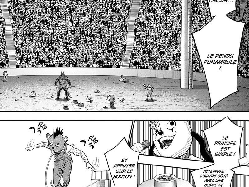 Suite et fin de la balade sanglante au parc d'attractions Deader Land. Un neuvième tome de "Jagaaan" où on voit peu Airi et ses colocataires par rapport à la place qu'ils occupaient dans les volumes précédents. En revanche, Jagazaki est très présent dès le début, d'abord en costume de fantôme de l'opéra, et son combat contre Chongirou Rabbit est plutôt spectaculaire d'autant qu'il a lieu en même temps que celui qui oppose le flegmatique Mikazuchi à Hoichi Nonsense. Un peu comme dans "Alice au pays des merveilles", les personnages avancent au pays des détraqués au risque de se perdre eux-mêmes. À la fin de ce volume, c'est la fin d'un arc avec plusieurs rebondissements et changements de cap dus à l'avancée de l'action et aux revirements psychologiques des personnages, sans compter ceux qui sont morts en cours de route. Le dixième tome verra donc le début du troisième arc de la série.
