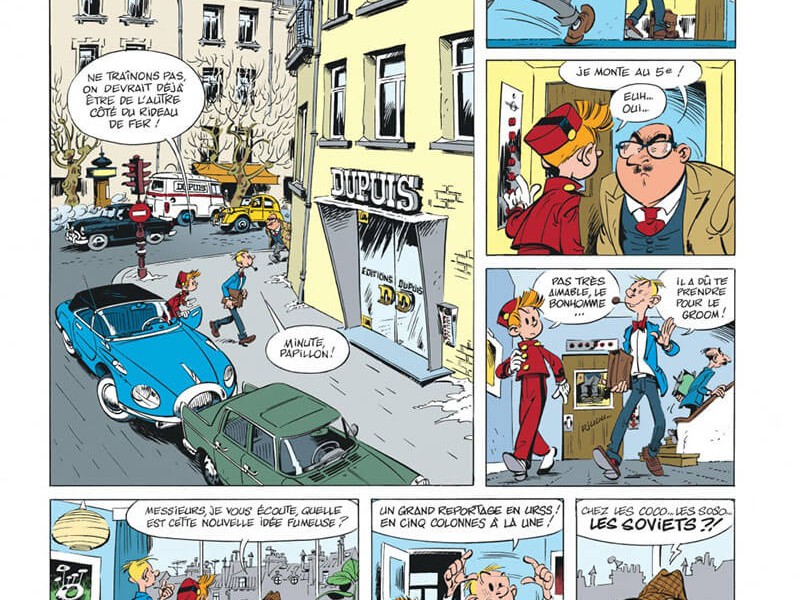 Spirou chez les Soviets est un album spécial. Il est entrecoupé de l'humour spirituel et si reconnaissable qui rend la série si forte. Fred Neidhardt a un sens parfait de l'alchimie entre ses personnages principaux et secondaires. Un album avec des Soviétiques pur jus doit prévoir un certain nombre de clichés. Ici aussi, nous ne sommes pas restés sur notre faim. De plus, l'histoire est surchargée de clins d'œil à la bande dessinée franco-belge. Fabrice Tarrin a déjà dessiné une histoire de Spirou et montre ici encore son talent. Une histoire peut toujours être aussi dynamique, mais si le dessin ne suit pas, cela ne fonctionne pas. N'ayez crainte, le dessin de Tarrin est le meilleur que nous ayons vu ces dernières années avec Spirou. A noter que l'idée de cette bande dessinée est née d'une lettre à l'hebdomadaire Spirou d'un lecteur (Falzar) en 1977 demandant quand un album de Spirou avec les Soviétiques sortirait ... et près de 50 ans plus tard le voici !