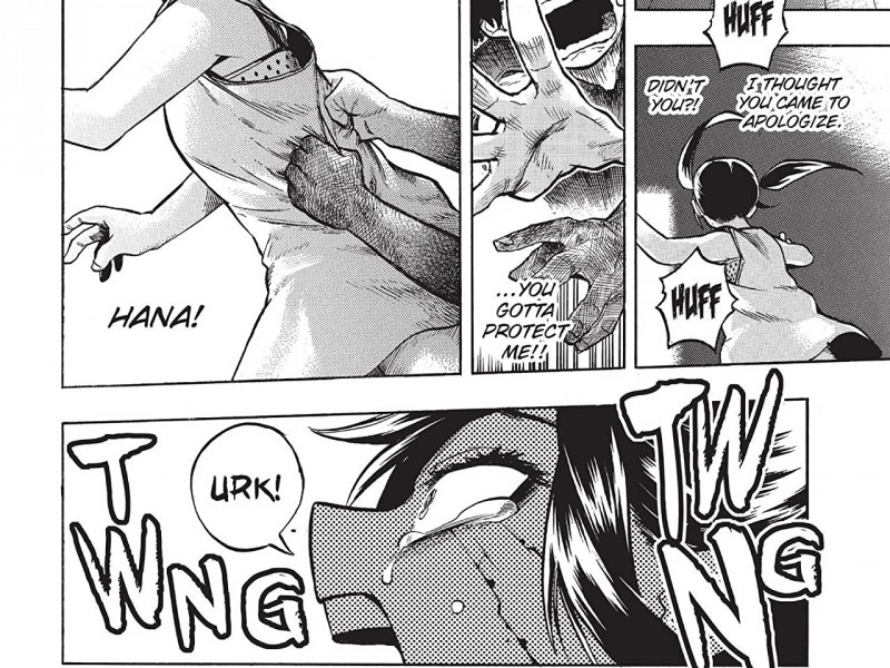 Alors que déjà dans le tome précédent, les vilains étaient mis à l'honneur, l'auteur continue de braquer les projecteurs sur eux dans ce vingt-cinquième numéro, et comme la dernière fois c'est une véritable réussite ! Comme le montre, la couverture (qui est au passage sublime) et son titre, ce nouveau tome se concentre quasi uniquement sur LE vilain de My Hero Academia depuis la chute de All For One, Tomura Shigaraki. Alors que nous avions au fil des tomes eu des brides de son passé, c'est finalement dans ce manga que ses origines nous sont dévoilées intégralement ainsi que son véritable pouvoir. Et que dire si ce n'est que certains lecteurs risquent de le préférer à nos héros ! Ces derniers justement sont de retour, mais restent en second plan. Les élèves de Yuei ont finalement le droit de retourner sur le terrain dans le début de l'arc de l'agence Endeavour. Et sans le savoir, ils vont se retrouver en première ligne lors du nouvel affrontement qui se prépare entre super héros et vilains. En somme, rien de bien nouveau ou d'innovateur dans cette seconde partie, cela reste une intrigue classique qui fonctionne, mais nous laisse un peu sur notre faim de ce côté là. Finalement, est-ce que l'œuvre de Kohei Horikoshi ne doit pas son véritable succès à ses personnages secondaires, à ses anti-héros, à l'image de Hawks dont on ne sait toujours pas quoi en penser ?