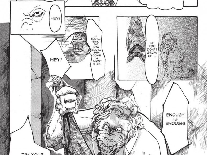 Beast Complex est une série en trois tomes parue au Japon aux éditions Akita Shoten. Avant que Paru Itagaki ne nous offre BEASTARS, elle a expérimenté un monde anthropomorphique qui aurait donné naissance à Legoshi, Haru, Louis et le reste des élèves de l'Académie Cherryton. Beast Complex, qui se déroule dans le même monde que BEASTARS, est présenté comme des histoires autonomes se déroulant à une époque où les amitiés et les relations entre carnivores et herbivores étaient encore difficiles (en fait, on peut encore dire qu'elles le sont, comme le montrent les deux derniers volumes de BEASTARS). Itagaki s'inspire des fables d'Esope dans les six chapitres du premier volume de Beast Complex. Les contes sur l'amitié, l'amour et la confiance jouent main dans la main avec ce qui deviendra BEASTARS plus tard dans sa carrière. Le thème des opposés qui s'attirent est peut-être le plus fort de ce que ces histoires véhiculent, puisque les lecteurs voient une amitié entre un tigre et un castor ou une romance s'épanouir entre un chameau et un loup. Tout cela est capturé avec beaucoup de cœur et d'attention, avec de nombreuses analogies avec des problèmes du monde réel concernant le racisme et autres, qui s'intègrent bien dans ce qui se passe dans ces one-shots. Cette notion de dépassement des stéréotypes est bien présente dans plusieurs de ces histoires. "Le lion et la chauve-souris " prend en considération la peur de la chauve-souris pour le lion, qui fait de son mieux pour gagner la confiance que la chauve-souris a perdue lorsque ses parents ont été dévorés par des carnivores. Le fait de prendre le temps de faire des recherches sur ce que les autres ressentent face à la soif et aux pulsions joue un rôle important dans "Le chameau et le loup", même si le type de relation qu'ils commencent à entretenir peut amener certains à s'interroger sur certaines sexualités tordues et autres. (Les personnes mal à l'aise avec la vorarephilie peuvent être rebutées par ce récit en particulier).