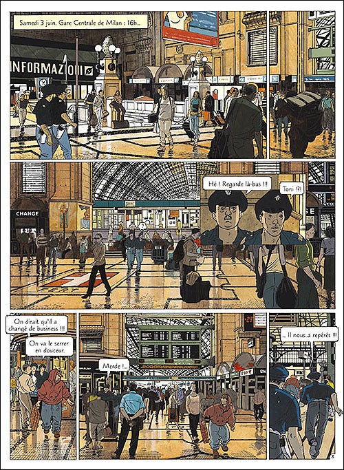 ![]() Plate-forme : Bande Dessinée Date de sortie : 02 Juin 2006 Editeur : Développeur : Genre : Bande dessinée Multijoueur : Non Jouable via Internet : Non Test par Nic0078/10 Scénario et dessin : Daniel Ceppi La B.E.R. (Brigade des Enquêtes Réservées) est en quelque sorte l'équivalent Suisse du FBI. Elle intervient sur les dossiers qui ont attrait à la sécurité nationale. Cette Brigade doit donc surveiller le sommet de l’Organisation Mondiale du Commerce qui va s'organiser dans leur pays. On sait que ce genre de rendez-vous est généralement perturbé par de nombreux manifestants, aussi faut-il être attentif aux futurs invités et aux allées et venues qui s'organisent actuellement en marge de l'évènement. L'équipe se compose de Zoé Zemp, l'enquêtrice la plus pragamatique du groupe, Etan Loeffel un ancien des stups aux méthodes brutales, Mathéus Rime plutôt spécialisé dans la finance, et bien sur Louis Noverraz, un politicien bombardé à la tête du groupe et sans aucune expérience de terrain, mais faisant toujours preuve de cynisme. Notons également que Zachary Zemp est journaliste indépendant et aidera fréquemment la brigade, surtout quand il s'agit d'aller fouiner ça et là. Interpol Rome vient de les contacter pour leur signaler un container suspect stocké au port de Genève. Il appartient à la société Bénitez Corp., dont l'activité principale est l'importation de produits toxiques. Aie, aurait-on déjà trouvé un indice compromettant ? L'homme d'affaire Italien nommé Luigi Brachetta a été bouclé et se situe au centre de détention de Brigue. Il se dit prêt à parler et à collaborer pour éviter l'extradition vers son pays d'origine. Cela sera l'occasion d'en apprendre plus sur l'Opération Pandore ... VERDICT- Une série très prenante et bien réalisée, avec une mise en scène qui rappelle la série 24 et un graphisme percutant. |