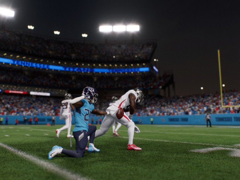 L'idée maîtresse d' EA SPORTS NFL 26 cette année est sans conteste le système d'apprentissage automatique qui façonne les décisions en s'appuyant sur des décennies de données NFL réelles, un système qui sera également présent dans d'autres titres sportifs de la marque. En pratique, cette différence n'est pas vraiment perceptible à l'œil nu, mais on constate bel et bien une amélioration du comportement des joueurs sur le terrain. Mais ne vous attendez pas à quelque chose d'extraordinaire, bien sûr. Le point fort de cette édition réside toutefois dans le système QB DNA, qui confère à chaque quarterback une personnalité unique, rendant l'expérience de passe plus authentique et moins « copier-coller » entre les joueurs. Un autre point positif est la fluidité du jeu, notamment au niveau des performances graphiques, mais nous y reviendrons plus tard. Pour en revenir au sujet principal, les mouvements semblent plus rapides, plus naturels et les joueurs répondent mieux aux commandes. Le jeu est en effet beaucoup plus fluide, ce qui constitue une nette amélioration par rapport à l'année dernière, mais reste modeste comparé au bond en avant observé dans College Football 26 , qui est à des années-lumière en termes de rythme, de réactivité et d'impact des commandes. Dans ce jeu, chaque action est un événement. Ici, certains moments ressemblent encore à des rediffusions des éditions précédentes. Un autre détail intéressant de NFL 26 est l'ajout d'un système d'attrition des joueurs en cours de match, déjà présent et bien exécuté dans College Football 26 , et qui fait enfin son apparition dans son « frère plus célèbre ». Bien que cela fonctionne bien dans certains contextes (comme les matchs avec des conditions météorologiques extrêmes), le sentiment général est que ce mécanisme pourrait être mieux intégré au gameplay. Les joueurs se fatiguent, certes, mais l'impact n'est pas toujours clair ni suffisamment stratégique pour modifier leur approche. Enfin, il faut mentionner une impression que nous avons eue en jouant à plusieurs jeux dans tous les modes possibles. La différence entre les modes arcade, simulation et compétition est énorme. En mode simulation, par exemple, nous avons énormément de mal à faire en sorte que les receveurs et les attaquants adverses conservent le ballon sur de belles passes.