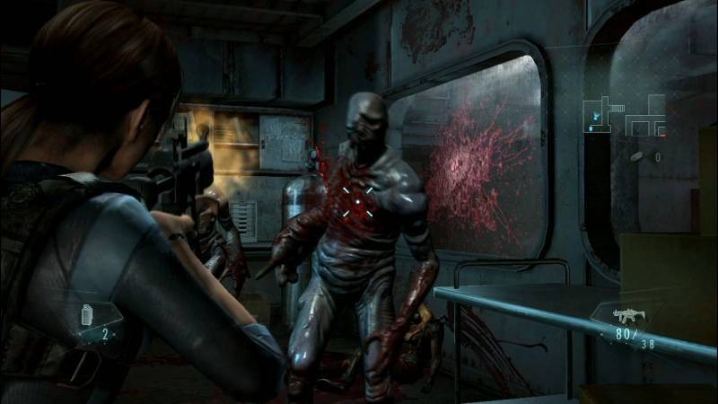 L'intrigue décrite dans Resident Evil Revelations nous ramène en 2005, entre les épisodes 4 et 5 de la série. Jill Valentine et son partenaire de la Bioterrorism Security Assessment Alliance (BSAA), Parker Luciani, doivent retrouver Chris Redfield et Jessica Sherawat, partis enquêter sur des phénomènes étranges en mer Méditerranée. Leurs dernières coordonnées GPS indiquent leur présence à bord d'un bateau de croisière, le Queen Zenobia, supposé être abandonné depuis longtemps. Dès les premières minutes de jeu, la tension est constante. Dans l'espace confiné du navire, de nombreux ennemis hostiles rodent, et un virus mortel, le T-Abyss, a déjà fait de nombreuses victimes. Initialement lancé sur Nintendo 3DS, Resident Evil Revelations intègre une structure parfaitement adoptée au support portable : La progression rappelle beaucoup une série télévisée, avec un résumé des évènements précédents au début de chaque nouveau chapitre (douze au total), sans compter que vous devrez fréquemment changer de personnage, afin de découvrir l'histoire sous différents angles, tout en cherchant les raisons pour lesquelles leurs ennemis ont toujours une longueur d’avance. Y aurait-il un traitre parmi vos rangs ? Quoiqu'il en soit, votre chef Clive R. O'Brian semble en savoir davantage qu'il ne l'exprime. Plus exotique, le duo Keith et Quint vous enverra en territoire nordique, de quoi assurer un certain dépaysement (et un petit côté Lost Planet également). Resident Evil Revelations marque surtout un retour aux sources horrifiques pour la série. Armé d'un stock restreint de munitions, il vous faudra avancer avec prudence dans les salles obscures du navire, les développeurs ayant multiplié les effets de surprises. En outre, le système de tir a également été amélioré, vous permettant de changer de perspective (de la troisième à la première personne). Il faudra même parfois résoudre des énigmes (certes beaucoup plus facile que dans les épisodes PSone), tout en gardant une trace des portes verrouillées dans vos notes de jeu. Équipé de votre scanner Genesis, vous pouvez désormais analyser vos ennemis, explorer des territoires et détecter les objets cachés. Lorsque le compteur atteint 100%, vous remporterez une arme supplémentaire. Signalons par ailleurs que les armes sont entièrement personnalisables, et que les coffres sont de retour pour gérer les équipements en surplus. Un titre complet.A l'image de Resident Evil 5, vous parcourrez souvent l'aventure en tandem. Le personnage secondaire est en mesure de se débrouiller seul, et ne bénéfice d'ailleurs d'aucune jauge de vie (contrairement au votre, où une vision trouble et très ensanglanté signifiera qu'il est temps d'utiliser une herbe verte). Néanmoins, on ne peut pas dire que vos alliés se montrent particulièrement utiles dans la partie. En effet, ils peuvent tirer sur les ennemis et quelque peu les ralentir, mais ils ne peuvent en venir à bout ! Résultat, il faudra se coltiner tout le ménage, et ce n'est pas toujours chose évidente lorsque vous êtes à proximité d'un monstre qui peut éliminer en un seul coup. Le nouveau mode Commando est jouable en mode solo ou co-op (en ligne). Vous pourrez y incarner Jill Valentine et Chris Redfield dans une foule de missions où il faudra vaincre des hordes d'ennemis. Gagnez des points bonus pour chaque ennemi dégommé et sélectionnez la mise à niveau de votre choix pour optimiser vos armes et faire progresser votre personnage. Pour cette édition console de salon, les développeurs ont ajouté quelques costumes ainsi que des personnages additionnels (dont le sémillant Hunk ou encore Rachel avant sa transformation). Techniquement à la hauteur ?Malgré quelques errements du côté du design des personnages, Resident Evil Revelations peut se vanter d'offrir une réalisation graphique assez convaincante. Ce passage à la haute définition embellit l'ensemble, même si quelques détails trahissent les origines nomades du jeu. L'ambiance se montre pour le moins éclectique, même si l'aventure se déroule essentiellement en pleine mer. On aura également plaisir de retrouver les monstres emblématiques de la série, accompagné de petits nouveaux engendrés par le terrifiant T-Abyss. Vous ne serez troublé par aucun bandeau chargement à l'écran durant les missions, Capcom ayant décidé de les dissimuler. Lorsque vous emprunterez un ascenseur ou changerez de compartiment sur le bateau, le jeu peut se mettre sérieusement à ramer. Il est donc conseillé de rester immobile durant ces séquences "intermédiaires". La jouabilité reprend quant à elle le schéma de contrôle des épisodes 4 et 5, avec quelques petits ajustements. Bonne nouvelle, il est permis de se déplacer tout en tirant, même si l'ensemble demeure un brin rigide, en tout cas davantage que dans RE 6. On retrouve quelques séquences d'actions interactives (QTE) et la possibilité de faire rapidement un 180°. On pourra par contre regretter le manque de lisibilité de la carte du jeu. Il est parfois très difficile de trouver sa destination, quand bien même vous seriez situé juste à côté. Pour sa part, la durée de vie s'avère un peu plus élevée qu'à l'accoutumée. La campagne solo occupera une dizaine d'heures, tandis que l'option Commando dépendra de votre passion pour les frags. Les missions proposées sont assez vite terminées, mais si vous souhaitez débloquer des récompenses (personnages, costumes, armes), il faudra y passer du temps. Le mode multijoueurs est d'ailleurs assez sympathique à parcourir, mais il aurait été appréciable d'introduire une option pour jouer en écran splitté. Notons que par rapport à l'épisode 3DS, nous retrouvons un nouvel ennemi, ainsi qu'un mode de difficulté supérieure (Enfer, ça ne s'invente pas). Enfin, la bande son est globalement très convaincante. Les musiques font preuve d'une belle variété des situations,