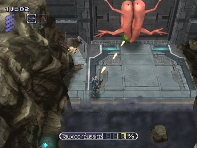 ![]() Plate-forme : Playstation 2 Date de sortie : 24 Février 2005 Editeur : Développeur : Genre : Action Multijoueur : Oui Jouable via Internet : Non Test par Nic0077/10 La série Contra est de retour ! Et Konami change encore de gameplay ... Contra se chercheDepuis les 32 bits, la série Contra a connu plusieurs variations. Sur PSone ce fut un massacre avec un passage à la 3D absolument pas maîtrisé, c'est pourquoi Konami opta pour une vue à l'ancienne (un jeu en 2.5D dirons certains) pour son premier volet PS2, Shattered Soldier. Pour ce Neo Contra, Konami a décidé de repartir sur d'autres bases et nous voici avec une vue de dessus, et des niveaux qui s'étalent dans différentes directions (fini le couloir fixe). Il faudra donc apprendre à maîtriser le tir et les nouvelles possibilités de gameplay, surtout qu'il n'est plus possible de sauter. Konami a également repensé la difficulté de sa série. Un Contra facile ? Presque, il faut environ une heure pour terminer le jeu avec ce mode de difficulté, le nombre de vie et de crédits supplémentaires, étant qui plus est, important. Mais il vaut mieux commencer en Normal, sauf si vous voulez vous entraîner, car vous raterez trois niveaux additionnels ! Luxe calme et voluptéNeo Contra c'est de l'action à 100%, qui reste très old school dans la forme : Pas de sauvegarde, ni de barre d'énergie. Vous vous faîtes toucher, hop une vie en moins. A peine la partie lancée, vous canardez à tout va. Vous avez le choix entre deux personnages (il est d'ailleurs possible de jouer à deux !) et vous devez éliminer les robots, mutants et autres joyeuses bêbêtes qui peuplent cette univers très kitsh. En plus de l'arme principale, on décèle une arme spéciale qui permet de faire un sacré carton, ainsi que d'autres modèles. Cependant vous ne pouvez pas les employer toutes en même temps et il faudra faire un choix (trois combinaisons possibles). Le Contra de confianceTechniquement Neo Contra est très correct avec un univers assez baroque. Le moteur 3D tourne bien, et l'animation est assez fluide en solo, mais à deux joueurs ça rame un peu (moins en 60Hz). Côté jouabilité, c'est très simple à maîtriser (moi voit, moi tue) et la fonction de roulade permet de s'en sortir sans accroc la plupart du temps. Par contre la bande son est sobre, trop sobre et contraste nettement avec l'avalanche d'éléments présents à l'écran. Comme les jeux 16 bits, ici le challenge c'est de finir le jeu à 100%. Malheureusement le jeu reste très court pour le joueur occasionnel qui bouclera le jeu en seulement cinq-six heures.