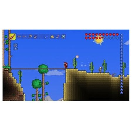 Editeur : Développeur : Genre : Action/Aventure Multijoueur : Oui Jouable via Internet : Oui Test par Nic0077/10 Terraria arrive enfin sur Nintendo 3DS dans une version plutôt efficace. Retour au front.Lancé en mai 2011 sur PC, Terraria a déjà connu une grande vague d'adaptation sur consoles. Sur Nintendo 3DS, c'est à nouveau le studio Engine Software qui est responsable du portage. Proposée à 19,99€ sur l'eShop (la version cartouche arrive en janvier), cette version nous permet de visiter des environnements générés aléatoirement par l'ordinateur. Dans l'aire de jeu, vous devrez creuser toujours plus loin pour collecter de nombreuses ressources (accessoires, argent, minerais), survivre à des événements divers et variés (chute de météores, arrivée du Père Noël), explorer un monde toujours plus grand, et construire des centaines d'objets (des armes pour se défendre, mais aussi une maison et pourquoi pas un château). Les bâtiments accueilleront rapidement de nombreux gens qui vendront leurs services pour vous aider dans votre voyage (marchand, infirmière, etc). Les monstres sont incroyablement variés (150 au total), et il n'est pas rare de tomber sur un boss (15 ). Heureusement, l'arsenal de départ comporte des haches de combat, une épée, un arc, des shurikens, des fusils ou encore des boomerangs, et de nombreux bonus apporteront des pouvoirs supplémentaires à votre personnage (notamment le double saut). Les environnements se montrent davantage variés que dans un Minecraft. Votre aventure vous mène sous terre donc, mais dans les airs et parfois sous l'eau. Naturellement, les destinations s'avèrent plus ou moins dangereuses, et en cas d'avarie votre matériel restera là où le personnage a succombé, obligeant souvent à faire un long détour depuis le dernier point de contrôle. Le personnage est customisable d'emblée, et comporte un large panel d'améliorations. En ligne, on retrouve du coopératif sympathique, mais les combats restent toujours aussi confus. Aucune compatibilité avec la Wii U à constater, à cause de la limite de la taille du monde sur la portable. Une réalisation à la hauteur ?Le principal écueil des versions consoles de Terraria venait d'une maniabilité parfois un peu hésitante, malgré les différents systèmes de ciblages, rendant les interactions difficiles avec les divers éléments du décor. Sur 3DS, le confort est déjà plus pertinent, le jeu étant compatible avec l'écran tactile pour offrir une construction plus simple des structures et des combats ennemis. L'écran du bas sert à afficher les différents modes (zoom pour construire/miner, craft) et raccourcis (sac à dos, objets principaux). Le curseur d'attaque est orienté par le pavé circulaire, et lorsque l'on tient un outil, un autre curseur s'affiche par défaut sur les blocs de fort intérêt. Seuls les mondes ont été forcément retouchés pour s'adapter au petit écran (1750 x 900). Notez que la 3D stéréoscopique n'est pas gérée et que le jeu tourne en 30 fps sur la 3DS mais grimpe à 60 fps sur New 3DS. Les combats manquent un peu d'intensité, et il est difficile d'affronter plusieurs ennemis simultanément tant le maniement des armes est rigide. Heureusement, le contenu de Terraria lui n'a pas été altéré, et de nombreuses mises à jour PC sont inclues d'office (équivalent de la version 1.2 pour être précis). Côté son enfin, les compositions sont plutôt efficaces et les bruitages corrects. VERDICT-Une adaptation de Terraria qui ne bouleverse pas la formule établie sur PC. Exhaustif et plutôt bien réalisé, le jeu affiche une ergonomie plutôt cohérente grâce à l'écran tactile, même si la lisibilité n'est pas toujours optimale sur Nintendo 3DS. Heureusement, le jeu conserve toujours son caractère addictif, mais n'égale toujours pas la version Windows. |