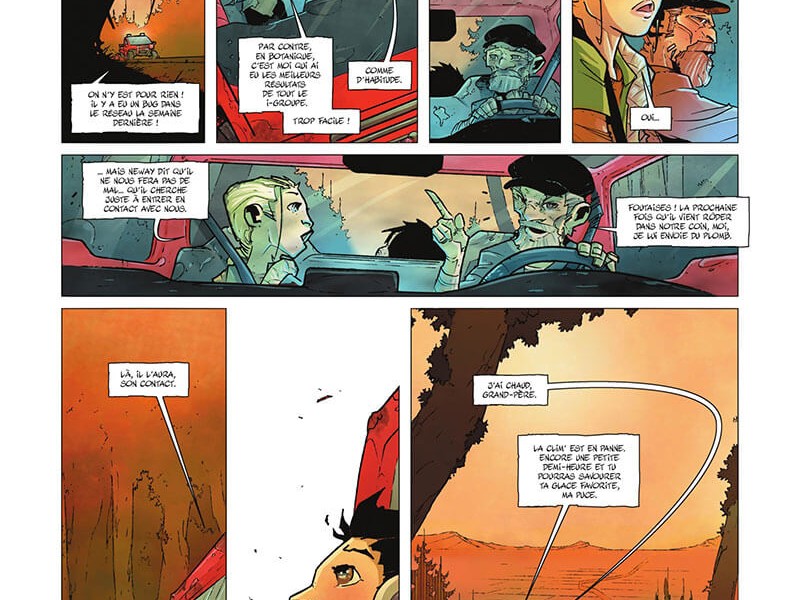 Serge Le Tendre imagine cette intrigue d'anticipation dans un avenir proche où les grandes holdings, après avoir minimisé le réchauffement climatique, ont bien voulu s'y attaquer en y voyant une nouvelle source de revenus. Droïdes, drones et pouvoirs psychiques sont le lot surnaturel de cette intrigue futuriste. Côté dessins, c'est Patrick Boutin Gagné au trait et Aurélie Frémineur à la couleur qui s'y collent pour un graphisme qui fait penser à de l'animation avec des personnages légèrement stylisés et une dynamique cinématographique des cases.