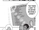 Zom 100 : Bucket List of the Dead (Zom 100 - Zombie ni Naru Made ni Shitai 100 no Koto) est une série toujours en cours de parution au Japon et qui a connu huit tomes à ce jour aux éditions Shogakukan. La routine quotidienne peut laisser n'importe qui mort à l'intérieur. Se réveiller, aller au travail, rentrer à la maison et s'endormir n'est pas une façon de vivre. Il faut parfois se réveiller pour se rendre compte que sa vie est en train de se gâcher comme un rouage dans la machine de l'entreprise. Pour Akira Tendo, notre héros dans le nouveau manga de Haro Aso et Kotaro Takata, Zom 100 : Bucket List of the Dead, il faut la fin du monde pour se rendre compte du temps qu'il a perdu. Jour après jour, Akira travaille jusqu'à l'os dans une entreprise qui réalise des publicités. Ce qu'il pensait être son travail de jour finit par aspirer toute la joie et l'essence de son bien-être. Son patron lui crie dessus ainsi qu'à ses collègues, presque tout le monde se vante des heures supplémentaires malsaines qu'il fait, et - pire que tout - le crush de travail d'Akira se tape une des personnes les plus haut placées. C'est, comme on peut l'imaginer, le pire scénario que puisse vivre un habitant d'un pays industrialisé. Mais tout change un jour, quand Akira se réveille et découvre que les morts-vivants ont pris le contrôle de la nation. Malgré la peur d'être dévoré par les zombies, Akira se sent libre pour la première fois depuis longtemps. Après avoir annoncé à son patron (zombifié) qu'il démissionnait et avoir avoué ses sentiments à son amour (zombifié aussi), Akira commence à dresser une liste de cent choses qu'il veut faire avant de rejoindre les rangs des morts-vivants.