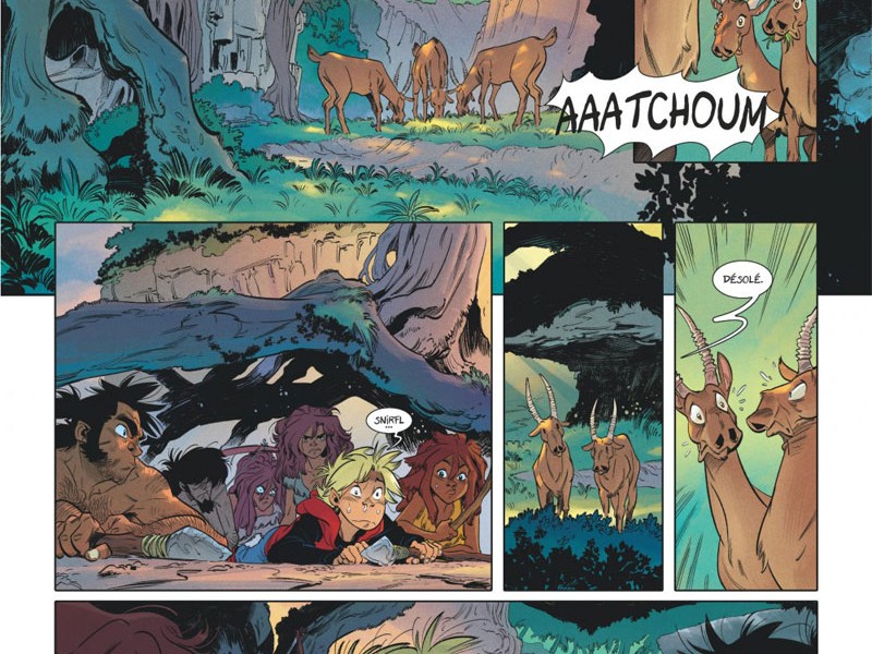 On appréciera les scènes humoristiques illustrant le choc des deux mondes, et les différents degrés de lecture qui permettent de sortir la bande dessinée de la simple production jeunesse. Le récit d'Olivier Bocquet se focalise sur l'exploration de Cro-Magnon et la tribu maîtrise beaucoup mieux les voyelles, ce qui rend la narration forcément un peu fluide. Dans ce volume, Franck va apporter ses connaissances médicales au peuple des roux, alors qu'une épidémie les menace. Voilà qui n'est pas sans rappeler les maladies ramenées par les Colons au temps de la conquête de l'Amérique et qui ont décimé tant d'Indiens. Et justement dans ce tome trois, la tribu d'adoption va apprendre à gérer le deuil. Le dessin de Brice Cossu s'émancipe quelque peu du style franco-belge conventionnel, avec une touche de manga et un rendu pour le moins dynamique. Les personnages féminins sont quant à eux beaucoup plus évolués que les hommes, avec un style très contemporain justement, heureusement, elles ont beaucoup de poils (pour compenser ?). La grande interrogation qui demeure pour le moment est de savoir si Frnck regagnera un jour son époque ou s'il tentera du moins d'y retourner, ce qui ne semble pas du tout le cas pour le moment.