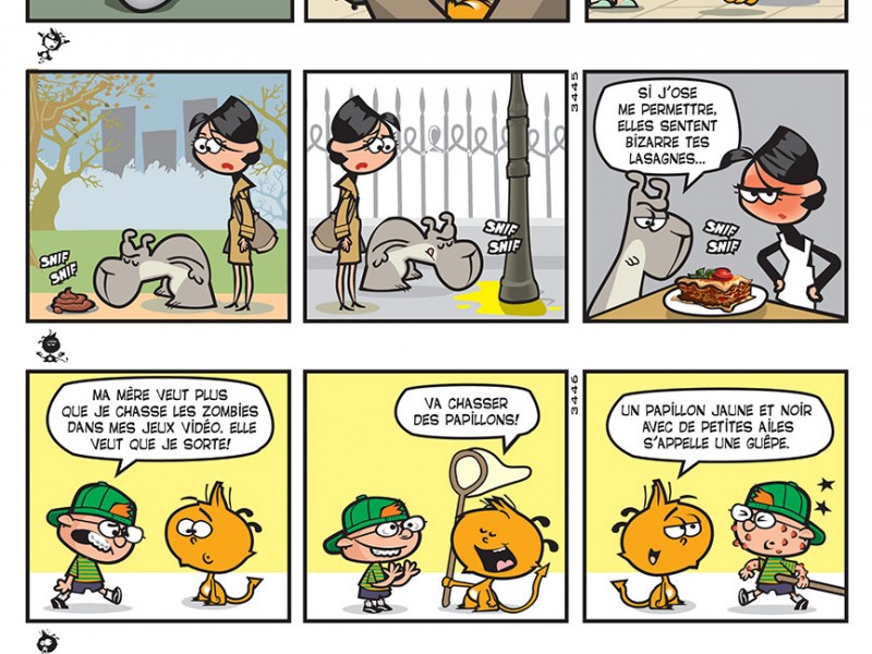 ![]() Plate-forme : Bande Dessinée Date de sortie : 08 Février 2019 Editeur : Développeur : Genre : Bande dessinée Multijoueur : Non Jouable via Internet : Non Test par Redaction8/10 Scénario et dessin : Christophe Bertschy Nelson. Voici un prénom pour le moins classique pour un personnage pourtant très singulier. Mais qui est-il vraiment ? Un diablotin orange absolument insupportable. Dans la plus pure tradition des strips comics, la BD contient une foule de gags souvent très loufoques ou se moquant de situations quotidiennes. Et avec Nelson, le moindre petit détail peut engendrer une catastrophe. Ce vingtième tome ne change pas l'ordre établi, si ce n'est que les premiers gags ont pour cadre les fêtes de Pâques (non tous les lapins ne sont pas en chocolat), avant que ce soit les références cinématographiques à l'honneur (Alien, Spider-Man, les zombies, etc). Notons également que Julie est de nouveau employé de bureau, après avoir travaillé de manière éphémère dans une galerie d'art contemporain. Et comme à l'accoutumée, Nelson adore manger, comme en témoigne le sous-titre de cet album. Du côté de la mise en page, on retrouve des planches de trois ou quatre cases, là encore une norme assez récurrente dans le genre (Garfield, Grimmy, etc). Le design s'avère simple et limpide, l'idéal pour ce genre de séries en somme, surtout que son univers est suffisamment rassembleur pour séduire un large public, de même que le récit est aisé à suivre. À ce jour, Nelson a déjà vécu plus de 4.000 strips et l'auteur a su modifier sa formule sans bouleverser les fondamentaux. Bien sur, Nelson a de la concurrence dans le domaine de la gaffe, celle de Floyd, un labrador pour le moins empoté et qui se retrouve souvent au mauvais endroit au mauvais moment, bien qu'il nous livre parfois des réflexions philosophiques éclairées. VERDICT-Nelson est une série comique qui fait mouche. Ce volume propose des gags qui se renouvellent assez bien, malgré des fondations inchangées, et les aventures du petit diablotin orange sont toujours un plaisir à lire pour petits et grands. |