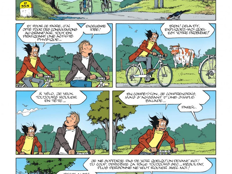 Le Docteur Médard est de retour, ses patients également. Et ce n'est pas une sinécure. On en vient à se demander à la fin qui influence réellement qui, tant le psychiatre semble avoir des réactions surprenantes à plusieurs reprises. Oui, la folie semble contagieuse. C'est donc reparti pour une cinquantaine de gags parlant de phobies loufoques, d'angoisses en tout genre et de délires toujours plus bizarres. Ce volume vingt-deux s'ouvre pourtant par un changement de taille : Le Dr Médard fait du vélo avec un de ses patients et déclare qu'il a décidé de modifier son mode de vie car il s'ankylosait trop derrière son bureau. Désormais, il a opté pour des consultations au grand air tout en pratiquant une activité physique. Une très mauvaise idée car l'un de ses patients ne supporte pas de rouler derrière quelqu'un et sera prêt à tout pour prendre la course en tête. Par la suite, le Dr Médard devra soigner une jeune femme ayant récemment eu un accident de voiture et qui n'ose plus monter dans un véhicule depuis ce jour. Comme un cavalier tombant de sa monture, il faut remonter immédiatement sur son destrier, en l'occurrence la Porsche du Dr Médard. Hélas, la patiente se débat et la police pense à une tentative d'enlèvement. Les pathologies se suivent et ne se ressemblent pas. Forcément, les méthodes du Dr Médard ne sont pas toujours très académiques, ni même efficaces, mais au moins il tente des thérapies nouvelles.