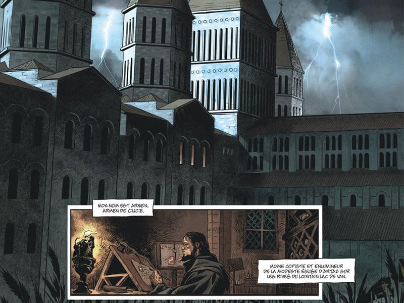 Abbaye de Cluny, quelques heures avant l'An Mil. Armen De Cilicie est un moine copiste, chargé de sauver des milliers d'ouvrage désormais oubliés ou menacés de disparaître dus à leur grand âge. Le 31 décembre 999, le ciel se déchaîne sur le royaume de France : Conformément aux prédictions de l'Apocalypse, une pluie de feu est jetée sur la Terre. Les forêts brûlent, les villes sont dévastées, le sol tremble, les montagnes disparaissent et une couche de poussière terrifiante plonge le monde dans une nuit sans fin. Le temps de l'obscurité commence sous nos yeux. Les rares survivants décident de quitter la surface et se réfugier sous terre. Pendant des années voire des siècles, la nature reprend ses droits, amenant les bêtes sauvages à dominer la planète et à balayer les derniers vestiges de la civilisation. Des milliers de générations plus tard, le soleil commence de nouveau à briller sur la planète bleue. Quelques humains tentent de remonter à l'extérieur. C'est le début des âges perdus, une époque où tout le savoir ancien a disparu. Il va falloir tout reprendre à zéro ou presque.