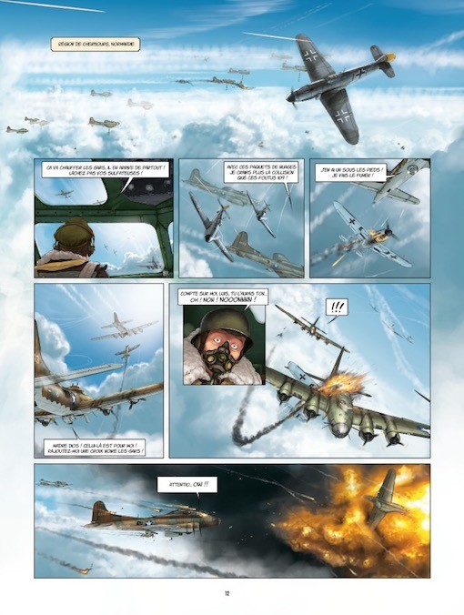 Ce deuxième album "Eagle, l'aigle à deux têtes" doit être lu parallèlement avec le tome 2 "Adler, l'aigle à deux têtes". Les deux couvertures côte-à-côte forment d'ailleurs un seul ensemble. Le scénario de cette partie nous permet de suivre l'histoire d'Eagle, enfin du moins de son enveloppe physique puisque son esprit semble désormais être possédé par celui de son homologue allemand. Le jeune homme présente un comportement imprévisible et violent, et peine à s'adapter à un monde qui n'est clairement pas le sien. Il décide de se rendre aux États-Unis pour essayer de comprendre ce qui se passe, mais à l'aube de l'année 1943, il se retrouve transféré en Afrique du Nord. Pour ne rien arranger, Eagle va croiser des connaissances d'Adler et se comporter comme s'il était un soldat allemand, tandis que les relations avec son père vont encore se distendre. Le scénario de Wallace réserve son lot d'interrogations, notamment concernant la dimension fantastique du récit, et il est parfois difficile de saisir l'importance des conversations. Le dessin de Julien Camp présente un style réaliste et plutôt détaillé qui n'est pas sans rappeler Romain Hugault (Angel Wings) offrant des séquences aériennes très dynamiques et un rendu global très réussi. Bien sur Eagle et Adler affichent les mêmes codes pour que les deux sagas conservent une unité.