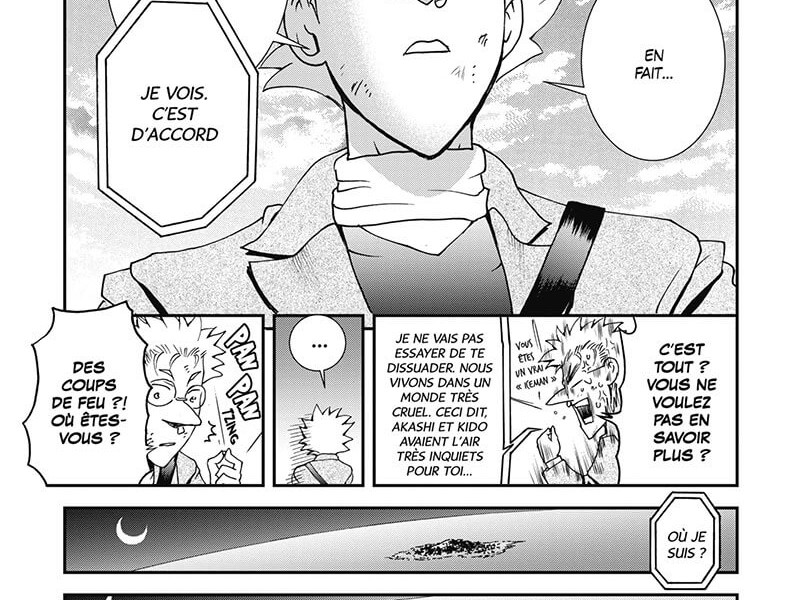 Les examens de mi-session atteignent enfin leur point culminant. Le combat devient de plus en plus extrême : Le corps se blesse de jour en jour, l'esprit est épuisé. Malgré tout, s'ils ne sont que trois à réussir, Eight, Hideo et Ayame ne lacheront rien. Eight poursuit son chemin, en y croyant, mais la situation se dégrade. Vers la fin des examens de mi-trimestre, au milieu d'une bataille féroce, l'ennemi de son père apparaît. L'histoire prend un tournant brutal vers l'apogée du chaos dans le tome 9 ! Un développement qui fait chaud au cœur avec le retour de Nohara dans le groupe et la participation de Kozuki et des autres. L'amitié au milieu du carnage, c'est très bien ! Crise après crise, jusqu'à ce que finalement, la fin de l'examen ne soit plus qu'à quelques dizaines de secondes ! Attention les apparences sont trompeuses ! Le manga supplémentaire est très puissant et s'intéresse au passé d'Ayame. Ayame est beaucoup plus puissante en tant qu'agent mais Eight devient de plus en plus grand en tant qu'être humain. L'habileté du dessin, l'audace de la division des cadres et le bon tempo de l'histoire sont les meilleurs qui soient.