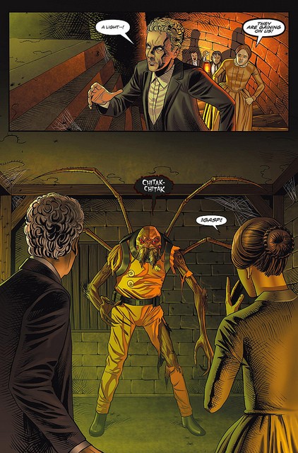 Pour rappel, est une série britannique de science-fiction créée par Sydney Newman et Donald Wilson et diffusée initialement de 1963 à 1989 sur BBC One. Elle raconte les aventures d'un extra-terrestre d'apparence humaine, le Docteur, qui voyage dans l'espace-temps à bord d'un vaisseau spatial, le TARDIS. Lorsque le Docteur est mortellement blessé, il peut survivre en se régénérant ; il change alors d'apparence et dans une certaine mesure, de personnalité. Après 26 saisons, la BBC annula la série à cause d'une baisse d'audience et d'intérêt du public. La seconde série, diffusée depuis 2005, correspond à une suite de la première série et compte déjà 10 nouvelles saisons, avec une diffusion dans de nombreux pays dont la France. Comme le titre l'indique, ce comics est quant à lui centré autour du Douzième Docteur, incarné à l'écran par Peter Capaldi. Ce comics débute alors que le Docteur vient juste de se régénérer et met donc à nouveau en scène Clara Oswald (Jenna Coleman) alias la fille impossible, comme compagne de route. Ce troisième volume débute par un mini-récit au cœur de l'Angleterre victorienne, où un alien isolé manipule les humains grâce aux ondes psychiques. Le retour à l'ère moderne se fera dans la douleur car le Tardis atterrit dans un Londres post-apocalyptique. Le Docteur se serait-il trompé de destination ? Eh bien non, mais le monde a beaucoup changé durant son absence. Clara est la première à le découvrir, cette dernière étant attaquée par un écorché, un humain qui a été brûlé par les flammes mais qui s'est relevé ensuite. Elle sera heureusement secouru par Sam le pompier (!), mais pas celui auquel on pensait. Le responsable de tous ces malheurs sur Terre ne sont autres que les Hyperions, une race de soleils vivants autrefois éclairée (spirituellement) et qui a apporté le progrès sur de nombreuses planètes. Mais après avoir atteint l'ultime stage de leur évolution, la Supernova, les aliens ont beaucoup changé et ont littéralement mis le feu à tout l'univers jusqu'à ce que les Seigneurs du Temps mettent fin à leur règne de terreur. La Terre risque d'être la prochaine victime, sauf si le Docteur parvient à contrer la menace ... avec un armement forcément venu d'ailleurs.