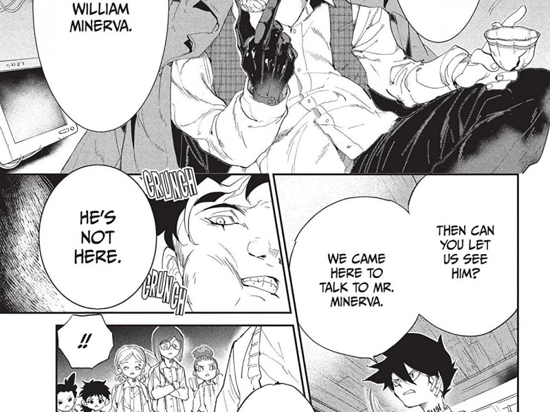Ce volume impressionne également par la façon dont il élargit les connaissances de la série. Les enfants trouvent toutes sortes d'informations sur le monde dispersées dans les abris souterrains, y compris des cartes des régions voisines. Cette information géographique inclut la première référence directe de la série à Goldy Pond, dont les fans qui se tiennent au courant via Weekly Shonen Jump reconnaîtront l'importance. Les récits de Geezer sur son passé font allusion à diverses menaces inconnues qui génèrent beaucoup de tension et d'angoisse. Les protagonistes ont beaucoup plus à craindre que Isabella et le reste de leurs anciens gardiens. L'œuvre de Demizu est aussi merveilleuse, comme toujours. Les personnages ont tous des expressions faciales et un langage corporel fantastiques. Cela permet au lecteur d'avoir une bonne idée de la façon dont les protagonistes font face à leur situation traumatisante, non seulement dans les moments de tristesse mais aussi dans les moments de joie. Il y a une quantité inattendue de comédie dans ce volume, et une grande partie de son succès provient du travail effectué sur le personnage de Demizu. Les compositions des pages sont également fortes, avec une variété chaotique de mises en page qui reflètent l'agitation frénétique de l'intrigue. Le flux d'actions entre les panneaux est également fluide dans la plupart des cas. Il n'y a qu'une petite scène vers la fin du volume qui s'avère préoccupante. Elle se produit pendant le voyage de Ray, Emma et Geezer à travers les bois infestés de démons vers Goldy Pond. Ils marchent prudemment jusqu'à ce qu'un gigantesque démon sauvage saute d'en haut et fasse un atterrissage bruyant. C'est une bonne scène dans son ensemble, mais cette séquence s'avère plus difficile à suivre que le reste du volume car les mouvements critiques deviennent quelque peu maladroits et déroutants. L'irruption du démon est particulièrement décevant, car sa composition et sa perspective ne traduisent pas efficacement sa masse et sa puissance. Ces choses peuvent facilement être déduites, mais elles ne sont pas transmises efficacement sur la page.