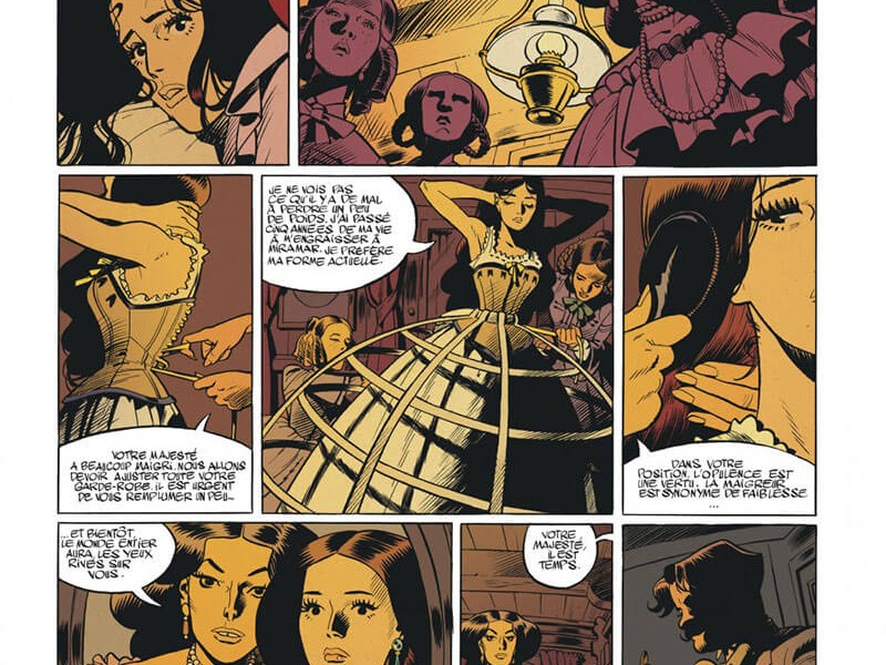 ![]() Plate-forme : Bande Dessinée Date de sortie : 12 Juin 2020 Editeur : Développeur : Genre : Bande dessinée Multijoueur : Non Jouable via Internet : Non Test par Redaction8/10 Scénario : Fabien Nury Charlotte impératrice raconte l'histoire de la vie (adulte) de Charlotte de Belgique, fille du premier roi de Belgique, Léopold Ier. En France, elle est probablement une figure historique inconnue pour beaucoup de gens, mais cet album montre que c'est injustifié. L'histoire commence avec la mort de sa mère, puis la rencontre de Charlotte avec l'archiduc Maximilien d'Autriche, le frère de l'empereur François Joseph. Nous sommes au milieu du XIXe siècle et les royaumes et les empires règnent en Europe. Chaque mariage revêt une grande importance politique, mais Léopold donne néanmoins à sa fille la liberté de choisir entre un prince portugais (Pierre V) et l'archiduc. Elle craqua pour ce dernier et le suivit après leur mariage en 1857 en Italie où il devint vice-roi de Lombardie-Venise. Mais il n'a pas tardé à être congédié par son frère, qui n'était pas satisfait de sa performance. Il se retira à Trieste avec Charlotte, où il souffrit d'une vie amère et retirée. Jusqu'à ce qu'il soit approché par des Mexicains qui voulaient un roi. Encouragé par l'empereur Napoléon III et contraint par son frère qui le déshérita, Maximilien fait la traversée. Là-bas un autre monde les attend. Maximilien devenu le nouvel empereur du Mexique, se mettra à dos l'ensemble de l'armée et de l'église, suite à sa façon de gouverner discutable. Charlotte de son côté découvrira l’horreur de ce pays écartelé entre la misère et la guérilla. C'est en faisant face a? toutes ces difficultés que Charlotte aura l'occasion d’exprimer sa confiance en elle, son leadership et sa capacité à gouverner. VERDICT-Charlotte impératrice est un ouvrage fascinant. Nury et Bonhomme érigent un monument pour une Altesse impériale inconnue, un monument du plus haut niveau ! Une BD qui a déjà tout d'un classique. On retrouve dans ce volume toutes les qualités du précédent, avec une histoire qui prend de l'ampleur. Nury est décidément un excellent scénariste, sachant adapter et romancer l'Histoire juste ce qu'il faut pour en faire un récit prenant, comme c'était déjà le cas dans "La mort de Staline". Et le trait de Bonhomme est décidément toujours aussi beau. |