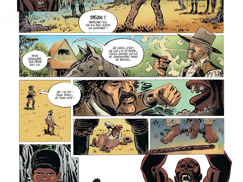 Édouard Chevais-Deighton tisse son scénario dans une Amérique profondément divisée à la veille de la guerre de Sécession. On y découvre une histoire d'amour et de haine entre blancs et noirs, sous évidemment un climat racial tendu. Les personnages sont introduits dès leur enfance jusqu'à leur majorité, l'occasion de mieux cerner l'origine du problème. Apparemment, Sally Berthier pourrait être la mère de Moïse. Le dessin d’Antoine Giner-Belmonte est une réussite, affichant un trait réaliste efficace et de sublimes paysages du bayou.