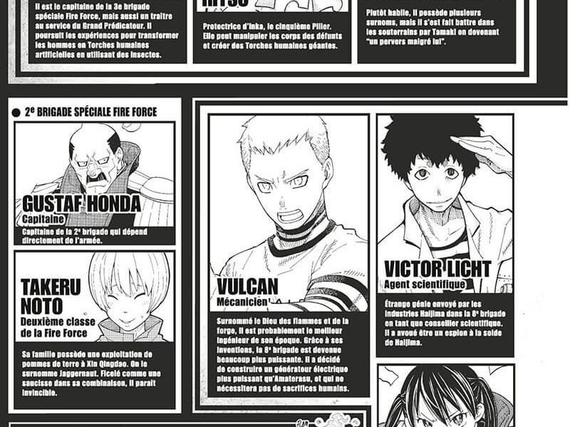 Dans ce volume, les personnages principaux sont les filles, et il n'y a aucun doute là-dessus. Après de nombreux événements qui ont fait avancer l'histoire, nous nous retrouvons à l'ouverture du volume avec une petite pause qui nous permet de faire un petit break. Le Scarlet Bullet, l'un des assassins à capuche blanche, prend le contrôle de la narration alors qu'il subit un entraînement brutal afin de vaincre Tamaki Kotatsu et son mode "perversion chanceuse". L'un des assassins à capuche blanche prend le contrôle de la narration alors qu'il subit un entraînement brutal afin de vaincre Tamaki Kotatsu et son mode "perversion chanceuse". Incapable de faire face à tous ces moments ecchi, le guerrier subit un entraînement qui va du visionnage de films pornos à la visite de cabarets, tout cela pour pouvoir affronter sa némésis... tandis que la pauvre Tamaki sort avec lui sans être très claire sur ce qui se passe. Le résultat est un début super hilarant, avant de passer au thème principal, dans lequel nous concentrons notre attention sur Maki Oze et sa famille singulière. Lorsque l'inspecteur Takigi, son frère, est gravement blessé lors d'une enquête dans les Enfers, son père Danrô Oze, général de l'armée de l'Empire et chef de famille, décide de mener une opération conjointe sous ses ordres avec les huitième et deuxième escouades, mais il en profite pour ordonner à Maki de quitter son poste chez les pompiers et de retourner à l'armée pour effectuer des tâches administratives afin de garder sa fille en sécurité. Bien sûr, l'ordre affecte beaucoup Maki, lorsque Hinawa lui-même accepte ce transfert et que la jeune fille se retrouve sur un bureau parmi des papiers... La verra-t-on revenir à son poste dans le huitième ? D'autre part, la mission dans les Enfers commence, qui se complique très vite lorsque les équipes formées par les membres du deuxième et du huitième escadron trouvent toute une légion d'infernaux zombifiés et des hommes à capuche blanche mortels qui mettent leur vie en danger. Sur le plan artistique, nous pouvons voir la signature de l'auteur, qui a clairement évolué à partir de tout ce qu'il a appris dans les volumes précédents et lors de son précédent titre Soul Eater. Rien qu'en regardant ses scènes d'action, on évoque immédiatement son style de trait et de dessin et ses cadrages en vignettes, avec cette touche " déjantée " qui nous avait déjà séduits la première fois et ses sourires dentelés, marque de fabrique d'Ohkubo.