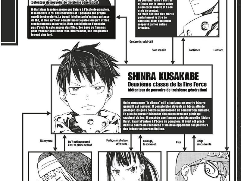 Fire Force (Enen no Shouboutai) est un manga toujours en cours de parution au Japon et qui a connu vingt-cinq tomes à ce jour aux éditions Kodansha. L'intrigue se déroule en l'an 198 du calendrier solaire, dans une ville de Tokyo très semblable au XXIème siècle. Le jeune Shinra Kusakabe désire devenir un héros et intègre la 8ème brigade spéciale Fire Force de l'agence de défense contre le feu. En effet, comme possédée par des démons, la population nippone a développé de nombreux cas de combustions spontanées. Pire, les victimes devenues des torches humaines sont encore en vie et menacent de détruire la capitale japonaise. La mission première des sapeurs-pompiers est de mettre fin à la vie des victimes, tout en priant pour le salut de leur âme (une religieuse accompagne chaque brigade). Mais toutes les personnes touchées par la combustion n'ont pas toutes perdues leur humanité. Les victimes de 2ème génération ont appris à utiliser le feu aux alentours d'eux, tandis que la 3ème génération s'est complètement adapté aux flammes au point de les contrôler totalement. C'est justement le cas de Shinra que l'on ne tarde pas à surnommer le Démon justement. Il peut courir à la vitesse d'une fusée, laissant derrière lui une traînée diabolique. Après Soul Eater, voici donc la nouvelle série d'Atsushi Ohkubo à paraître en France. Les pompiers ont désormais des pouvoirs et combattent des personnes qui s'enflamment d'eux même sans qu'aucune explication ne soit encore apportée. Si Shinra a choisi cette voie, c'est parce qu'il voudrait découvrir celui qui a provoqué la combustion de sa mère douze ans plus tôt. Bientôt, le héros découvre son rival tout désigné, Arthur Boyle, un clone du Roi Arthur des temps modernes (son arme se nomme d'ailleurs Excalibur ... épée qui apparaissait déjà dans Soul Eater).