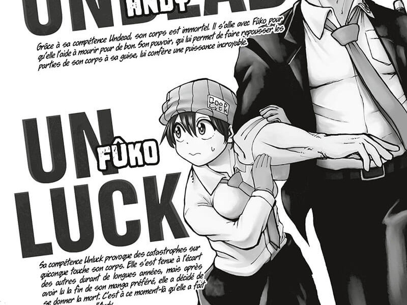 Undead Unluck est une série toujours en cours de publication au Japon et qui a connu dix tomes à ce jour aux éditions Shueisha. Tout ce que veut Fuuko, c'est une romance passionnée comme celle de son manga shojo préféré. Malheureusement, sa capacité de malchance rend cela impossible. Mais juste au moment où Fuuko touche le fond, Andy la fait tomber – littéralement ! Maintenant, elle est devenue le sujet de test réticent d'Andy alors qu'il cherche un moyen de déclencher un coup de malchance assez grand pour le tuer pour de bon. Cependant, lorsque le couple découvre qu'une organisation secrète les chasse, cela suspend les plans d'enterrement d'Andy.