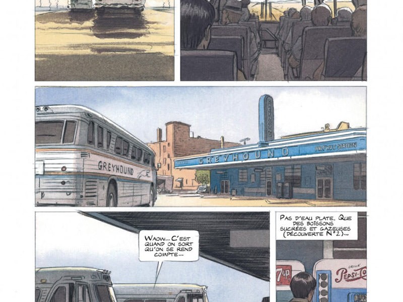 1965. Le jeune Pierre Christin arrive aux États-Unis. Le professeur de littérature française sillonne le Mid West sous une chaleur écrasante, heureusement il y a l'air conditionné à son bord, une option dont ne sont pas pourvus les cars français à l'époque. En revanche, la découverte des distributeurs automatiques de boisson le laisse sceptique (il n'y a que des boissons pétillantes et sucrées). Pierre se rend à Salt Lake City, la capitale des Mormons, où il va découvrir la vie à crédit. En effet, pour se procurer une voiture et pour régler le premier loyer de son petit appartement, il n'hésitera pas à faire appel au Crédit Union des Professeurs, qui permet de prendre en charge les dépenses ... mais avec un taux d'intérêt assez important. Un soir, Pierre Christin rencontre Jean-Claude Mézières, cowboy dans un ranch du Montana. Il lui propose de partir sillonner l'Ouest américain à ses côtés, mais également de travailler avec lui pour un magazine français du nom de Pilote. Après avoir récolté suffisamment d'argent, le professeur prend un billet sur le France, le paquebot mythique des années 1960, pour retourner dans l'Hexagone. Mais la situation compliquée que traverse les pays de l'Est éveille son intérêt. S'ensuit une visite des pays satellites puis une visite au sein même de l'URSS.