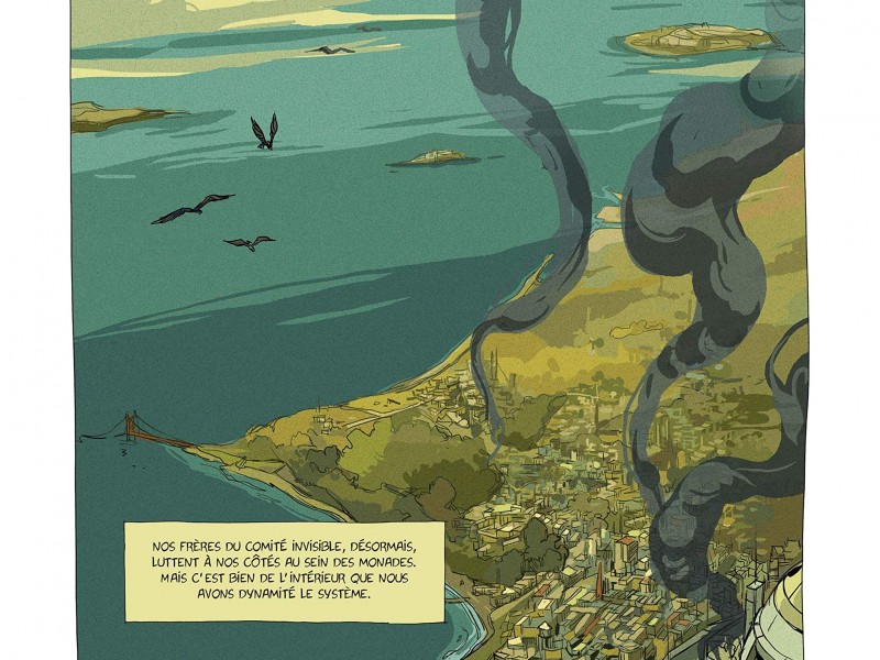 Quand le contrôle de la connaissance cherche non pas à éviter aux masses laborieuses de s’élever (même si en définitive le résultat revient à cela), mais bien de ne pas sombrer dans une fatale destruction. Un beau thème de science politique remis au goût du jour par Fabrice Colin. En somme, faut-il se replier sur des règles / traditions / lois fussent-elles rigides, inégalitaires ou amorales, afin de préserver un statu quo sociétal inconfortable mais pérenne, au détriment d’une situation potentiellement dangereuse qui pourrait précipiter la société vers sa propre perte. En termes d’énoncé du baccalauréat, cela revient à se demander si la fin – même incertaine car l'Histoire ne se répète pas, elle bégaie – justifie les moyens ? Les singes de la planète éponyme (Pierre Boulle), la police de Minority Report (version Steven Spielberg) ou bien l’illuminé Jorge de Burgos (Le Nom de la Rose) avaient su imposer un tel choix à leur société respective sous ce prétexte. Pour le bien de tous, évidemment… Le lecteur, en bon déficient (mono)neuronal à la lâcheté proverbiale, ne possède pas de réponse évidente. S'il devait en avoir une il postulerait immédiatement comme maître du monde adjoint. Ce jour-là sa reprise en main ferait passer le 8 Thermidor An II pour une journée de papouilles dans un SPA. Confronté à une situation aussi violente que forte, le dessin toujours aussi arrondi de Carole Maurel apaise. Il aide à progresser dans ce récit de façon très calme, presque pacifiée. Elle parvient, sans effet pyrotechnique superflu, à atténuer l'intensité des situations et des propos pour inviter le lecteur à se concentrer sur le déroulé et l'enjeu de l’histoire. Les couleurs douces contribuent également à adoucir agréablement l’ensemble.
