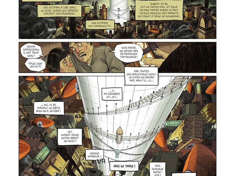 Une dystopie, encore.. Mais celle-ci est tellement originale ! C'est une BD loufoque, drôle mais à moralité dramatique. Une aventure d'une originalité que nous avons rarement pu lire, avec un final impressionnant qui nous remet le cerveau en place. Cette BD se révèle un peu plus complexe qu'une simple histoire de tyrannie, trahison et révolution. Ce récit, entièrement écrit en rimes, se dévoile complètement qu'à la toute dernière page. Un peu difficile à lire, l'éclairage qu'apporte le dénouement final nous donne a réfléchir sur notre propre état d'esprit pendant cette lecture follement déroutante ! Avez-vous déjà lu une BD écrite en rimes ?