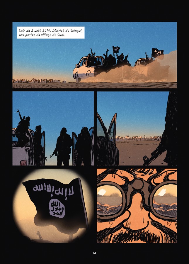 ![]() Plate-forme : Bande Dessinée Date de sortie : 04 Novembre 2020 Editeur : Développeur : Genre : Bande dessinée Multijoueur : Non Jouable via Internet : Non Test par Redaction7.5/10 Scénario : Tore Rorbaek Dans le nord de l'Irak, à la frontière avec la Syrie et la Turquie, se trouve la montagne sur laquelle Noé se serait échoué avec son arche après le déluge. Les Yézidis y vivent - adeptes d'une religion archaïque qui appelle à une vie strictement patriarcale. Dans ce roman graphique, nous suivons la lutte des deux frères Mazlum et Asmail pour sauver leur famille alors qu'ils fuient vers le mont Shingal avec des milliers d'autres Yézidis pour échapper à l'Etat islamique. Les militaires censés les protéger ont déjà quitté la zone et leurs voisins se sont retournés contre eux. La montagne avec ses pentes abruptes est peut-être leur seul salut. Après tout, plus de 50.000 personnes endurent la chaleur estivale sans eau ni même de l'ombre. Shingal est une histoire de trahison et de fanatisme religieux, mais aussi de courage, d'abnégation et de compassion. Le livre est basé sur des recherches approfondies et de nombreuses interviews et raconte l'histoire du génocide des Yézidis irakiens en août 2014. La persécution et le meurtre des Yézidis par l'EI étaient pour des raisons religieuses. À un certain moment de l'histoire des deux religions (celle des Yézidis et celle de l'EI), quelque chose a mal tourné avec la conversion d'un dieu, c'est pourquoi les Yézidis sont appelés et combattus par les islamistes comme des adorateurs du diable. Cependant, les Yézidis pratiquent également le fanatisme religieux. Ils vivent dans une stricte endogamie, ce qui signifie que quelqu'un qui se marie en dehors du clan sera expulsé. Et les femmes doivent être pures. Au cours de l'attaque contre les Yézidis, l'Etat islamique a enlevé de nombreuses femmes et les a mariées de force à leur propre peuple. Beaucoup de femmes qui ont été libérées plus tard n'osent plus rentrer parce qu'elles sont devenues impures en conséquence. Parfois, leur propre peuple leur a conseillé de se suicider. Comme Arzu Özmen, 18 ans, qui a été kidnappée et tuée par ses cinq frères à Detmold en novembre 2011 parce qu'elle avait une relation illégitime (la plupart des Yézidis en exil vivent en Allemagne avec 200 000 membres). Les parents ne sont pas venus aux funérailles. VERDICT-Shingal est un travail louable sur le génocide des Yézidis, est tragique et triste à tous égards, mais les frères Mazlum et Asmail ne sont pas assez forts en tant que portraits pour vraiment saisir le cœur. L'ouvrage peut être une incitation à traiter plus étroitement le sujet - peut-être dans les cours à l'école. Le récit est informatif et donne un bon aperçu du contexte historique. |