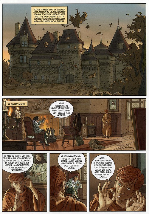 Nous sommes au XVIème siècle sous le règne de François Ier. Le frère Antoine poursuit sa route et cherche un abri pour la nuit. Malheureusement pour lui, un obstacle va lui barrer la route, un arbre couché, et désireux de passer outre, il va sentir le sol se dérobber sous ses pieds : C'est la chute, mais pas mortelle. Tombé dans une grotte assez grande, il va pouvoir explorer les lieux, jusqu'à tomber nez à nez avec un squelette.