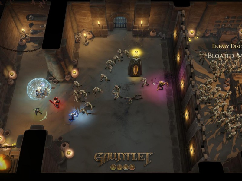 ![]() Plate-forme : PC Date de sortie : 23 Septembre 2014 Editeur : Développeur : Genre : Action/Aventure Multijoueur : Oui Jouable via Internet : Oui Test par Nic0077.5/10 Après des années d'absence, Gauntlet revient sur PC. Développé par Arrowhead Game Studios (les auteurs de Magicka), Gauntlet accueille donc un nouvel épisode pour le moment disponible uniquement sur Steam pour 19,99€. Après avoir sélectionné votre personnage parmi quatre possibles (Guerrier, Sorcier, Valkyrie, Elfe), chacun disposant d'un style de jeu et de compétences uniques, vous découvrirez un tutoriel pour le moins anecdotique et un scénario qui ne l'est pas moins. Vous vous retrouverez rapidement au cœur de donjons que vous devrez traverser tout en remportant des défis et en combattant des hordes de créatures maléfiques telles que des fantômes, des morts-vivants ou des guerriers squelettes. Chaque donjon renferme divers objets spéciaux qui permettront de récupérer de la santé, de déverrouiller des portes et d'utiliser des reliques magiques pour survivre plus longtemps dans le jeu. Le hack'n slash classique donc, jouable jusqu'à quatre en coopération (local ou en ligne), et intégralement en français de surcroît (voix et textes). Si Gauntlet affiche des environnements plutôt variés (cryptes poussiéreuses, grottes sinistres, donjons menaçants), la progression ne diffère pas d'un chapitre à l'autre (trois au total). Vous explorez un donjon, vous cherchez des clés, vous éliminez les totems et les monstres, et enfin vous affrontez un boss. Les seuls obstacles ? Des piques qui sortent du sol et un degré de difficulté assez élevé si vous jouez seul. Certaines cartes de donjon permettent d'explorer et de combattre à travers des salles remplies de créatures diaboliques, en relevant des défis et en découvrant des secrets et de l'or. Dans d'autres niveaux, la Mort en personne se lance à la poursuite des concurrents à travers un labyrinthe totalement imprévisible. Il y a aussi des cartes d'endurance où les joueurs doivent vaincre des vagues de monstres pour survivre. La prise en main s'avère très efficace, avec trois boutons d'actions (frappe normale, frappe spéciale, pouvoir). Le concept est ultra arcade, et si certains joueurs rencontrent des problèmes avec la configuration choisie pour les touches, il est possible de résoudre le bug en passant en mode clavier américain. Si le Valkyrie et le Guerrier privilégie le combat au corps à corps, l'Elfe et le Magicien lanceront des projectiles à distance. Il est possible d'améliorer les capacités et pouvoirs de vos héros en débloquant des "atouts". La campagne occupera environ six heures, ce qui demeure très correcte. VERDICT-Un épisode de Gauntlet nerveux et intense, à défaut d'être d'une redoutable originalité. Il s'agit d'un hack'n slash qui prend tout son intérêt à plusieurs (seul le jeu est un peu répétitif et surtout très difficile). |