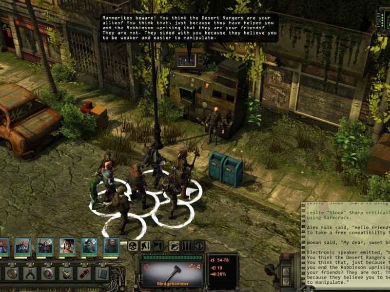 ![]() Plate-forme : PC Date de sortie : 10 Septembre 2014 Editeur : Développeur : Genre : RPG Multijoueur : Non Jouable via Internet : Non Test par Nic0078/10 Lancé en 1988, Wasteland accueille enfin une suite sur PC. Il était une fois.Commencé en 2012 via un financement sur Kickstarter, Wasteland 2 débute 15 ans après les événements du premier opus. Vous êtes à la tête d'une escouade de quatre Rangers du désert qui a pour but de restaurer l'ordre et la justice sur les terres dévastées de l'Arizona, si toutefois vous arrivez à survivre au manque d'eau, à la chaleur intense et aux zones radioactives sinistrées. Pour ne rien arranger, des gangs armés, des survivants fanatiques, des sectes sans pitiés, et des créatures mutantes rodent sur les terres mal famées. L'action évolue en 3D isométrique à l'ancienne et les Rangers devront aider les survivants dans leurs tâches quotidiennes. Vous pouvez créer entièrement votre équipe, ou bien utiliser des personnages déjà existants. Bien sur, chacun d'entre eux dispose de compétences (sept générales, et 29 particulières) à développer en fonction de vos points d'attributs. Elles pourront ainsi améliorer votre maniement des armes, vous permettre de donner des coups de poings, de déjouer des pièges, ou encore apporter de nouveaux comportements lors des conversations. Tous les choix effectués dans la partie compte, et à l'instar d'un GTA par exemple, vous pouvez abattre tous les personnages non jouables. Bien sur Wasteland 2 est également très rétro dans sa conception. Le système de combat au tour par tour s'avère classique, et les rencontres aléatoires très nombreuses. On se croirait dans un RPG japonais des années 1990, avec un découpage de la carte en grille dans laquelle vous pouvez vous déplacer en dépensant une certaine quantité de points d'action. L'intelligence artificielle manque également de caractère et n'hésite pas à se découvrir très facilement. Old School certes, mais la profusion de kits de soin rend l'aventure assez facile, la navigation moins. Vous disposez d'une unique boussole pour vous orienter. Une réalisation à l'ancienne.Sur le plan technique, Wasteland 2 est loin d'impressionner, mais affiche tout de même des environnements variés, chose parfois rare dans un univers post-apocalyptique, et une bonne lecture de l'action. On appréciera également le travail d'écriture excellent et des dialogues à choix multiples à l'issue souvent incertaine. Pour se déplacer, vous devrez passer par une carte générale, et surveiller la quantité d'eau en votre possession. Certaines oasis permettront de se réapprovisionner en route. En plaçant des relais radio à des points stratégiques du Wasteland, vous pourrez permettrez aux rangers de déterminer la position d'émission d’un message dicté par un fanatique. L'interface manque encore de confort, et la police de texte utilisée aura raison des presbytes tant elle demeure petite à l'écran. La prise en main demeure assez efficace, malgré une caméra assez lourde. Le grand point fort du jeu est sa durée de vie, comptez près de quarante heures pour terminer la campagne, sans compter les nombreuses quêtes annexes. On retrouve des musiques signées Mark Morgan, le compositeur des bandes-son de Fallout 1 et 2. Les doublages français s'en sortent avec les honneurs. VERDICT-Wasteland 2 est un titre pensé pour les amateurs du genre. Résolument old school, le titre d'inXile Entertainment offre une véritable liberté d'approche de l'aventure et une progression délicieusement narrée. |