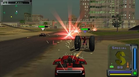 ![]() Plate-forme : PlayStation Portable Date de sortie : 04 Novembre 2005 Editeur : Développeur : Genre : Action Multijoueur : Oui Jouable via Internet : Oui Test par Nic0076.5/10 Twited Metal atterit sur PSP. Après quelques errances sur PS2, comment s'en sort cette version ? Développé par Incognito Entertainment, Twisted Metal : Head-On reste fidèle à la série qu'il représente, c'est à dire bourrin. Pourtant son contenu est assez exhaustif et propose moults missions dans de grandes zones où vous devez éliminer vos concurrents en leur tirant dessus par hasard. De nombreux bonus sont disséminés sur la piste, comme un Mario Kart et propose une IA globalement efficace. VERDICT- Fidèle à la série, Twisted Metal Head On plaira sans doute aux inconditionnels du genre. Les autres trouveront le jeu toujours aussi répétitif et peu distingué. |