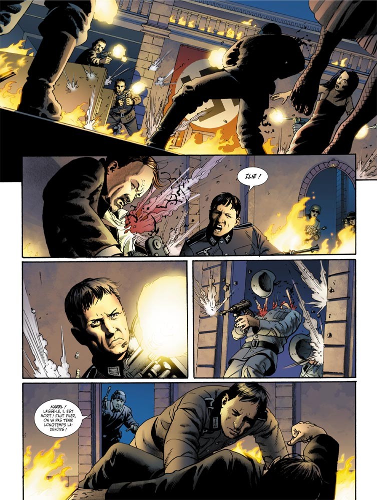 ![]() Plate-forme : Bande Dessinée Date de sortie : 17 Janvier 2006 Editeur : Développeur : Genre : Bande dessinée Multijoueur : Non Jouable via Internet : Non Test par Nic0077.5/10 Scénario : Nury Dessins : Cassaday Décembre 1942. Stanley Pilgrim enquête sur le meurtre de Victor Douglas Thorpe, un richissime industriel londonien dont le cadavre a été retrouvé totalement exsangue. Pilgrim est parvenu un suspect nommé Peter Wilkes, membre des plus hautes instances de l'espionnage allié. Karel Ricek, résistant Roumain, a pour mission de guider un commando Anglais, chargé par Peter Wilkes d'éliminer un dignitaire nazi, Rudolf Heyzig dans les montagnes de Transylvanie. VERDICT- Une aventure pour le moins étrange, mêlant action, fantastique, et enquête. |