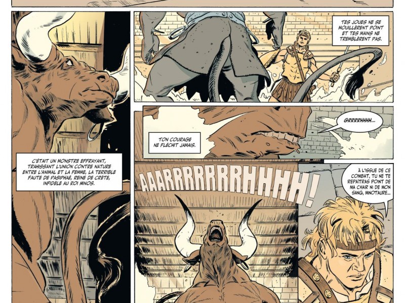 Le premier album de ce diptyque nous fait découvrir les jeunes années de Thésée, de son enfance malheureuse (répudiée par son père) jusqu'à son départ vers la Crère. Le récit proposé par Jerry Frissen s'avère assez cohérent et part du postulat que l'histoire aurait pu réécrire la légende de Thésée car la société n'aurait jamais acceptée qu'une femme soit l'héroïne d'une taille bataille. Après tout, les contes de la mythologie ont déjà été réécrits des milliers de fois depuis leurs origines afin de s'adapter au public qui les entend. Les illustrations de Francesco Trifogli sont magnifiques, les décors tout comme les personnages renforcent l'immersion de cet album. Il faut noter que l'ouvrage est un peu violent et tourmenté et déconseillé aux enfants cela va de soi. Le prochain volume devrait présenter le fameux combat contre le Minotaure.