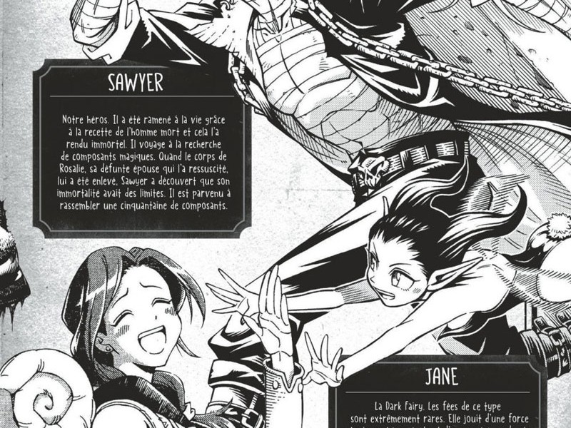 Avec Marry Grave, on reprend toujours exactement là où on a laissé notre lecture. Avec de l'action ou une révélation. Dans ce troisième volume, On passera notre lecture plongé dans le passé, à la découverte du parcours de nos deux héros, leur rencontre et une idée d'où ils viennent. L'aventure du livre interdit s'avère intéressante et nous avons découvert que Marry Grave fait partie du nom de Rosalie. Si vous pensiez déjà que Rosalie était un personnage cool, ce flash-back n'a fait que renforcer cette impression alors qu'il avait l'effet inverse sur Sawyer. On pouvait prétendre que Sawyer était un gars sérieux, avec une façade stupide pour alléger l'ambiance. C'est juste qu'il est un idiot. Ce troisième volume implique que le flashback se poursuivra dans le prochain volume, mais il ne déçoit pas. La lecture reste divertissante. Le travail graphique est très attrayant et ressemble au style d'Eiichiro Oda en ne le rendant pas si sérieux. L'auteur fait en sorte d rendre ses personnages reconnaissables et très caractéristiques, cet artiste prend le temps de dessiner les bêtes et leurs détails terrifiants, il semble que la mangaka aime faire ces horribles monstres avec leurs corps déformés. Il a aussi un goût sadique pour le dessin de scènes gores avec beaucoup de violence, créant des vignettes sanglantes et très détaillées.
