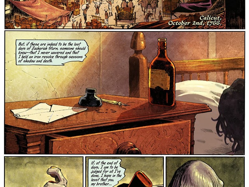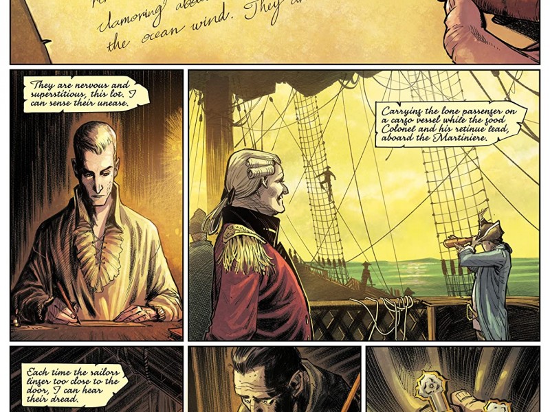 Le mythe de la création du christianisme, celui qui marque la soi-disant civilisation occidentale, est celui qui nous appelle à la soumission à des autorités inaccessibles et à la punition pour la désobéissance à ces absolus pré-existentiels. Jouez selon mes règles, suivez mes ordres ou subissez les conséquences humiliantes et douloureuses. D'autres mythes de création d'origines diverses partagent également l'élément de docilité et d'assujettissement par le pouvoir, acceptant l'infériorité de l'espèce humaine au sein de la force de la nature ou du cosmos. Et c'est ce complexe d'infériorité qui conduit l'être humain à rechercher le pouvoir, comme une faim insatiable, à s'imposer au reste et à gratter un morceau de divinité. "Comment es-tu venu dans ce monde?" est la question récurrente que reçoit la créature primitive mettant en vedette Wild Shores. Et l'histoire varie avec chaque réponse, mais la violence, la lourdeur tragique de la conscience et le désir irrépressible d'ascension (même à travers le cannibalisme) sont présents dans toutes. La prédation des égaux, la xénophobie et la misanthropie explicites pour faciliter le processus, sont les fondements du pouvoir absolu, l'origine de tout empire. Ainsi, se déroulant lors de la première guerre anglo-Mysore de 1767, l'œuvre du scénariste Ram V et du dessinateur Sumit Kumar (tous deux d'origine indienne), accompagnée de l'impressionnant travail du coloriste Vittorio Astone, nous propose un conte de monstres et de masques au milieu de la lutte impérialiste pour le contrôle de la Route de la Soie par la Compagnie britannique des Indes orientales. Et s'il peut sembler que la période qui se situe dans l'Inde du 18e siècle ou la charge critique et réfléchie des thèmes susmentionnés couvrira une grande partie de l'œuvre, la vérité est que le scénario de Ram V est intelligemment soutenu par des bases solides pour raconter un drame d'horreur avec des notes de romance qui établit le choc entre la civilisation et la barbarie à travers ses créatures monstrueuses.
