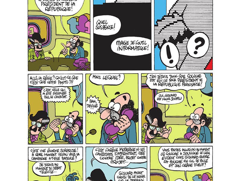 C'est l'histoire d'un mec, il rentre à l'Élysée...  On vous cache tout depuis toujours ! Le 10 mai 1981, ce n'est pas Mitterrand qui a gagné les élections présidentielles mais bien Coluche...  Heureusement les frères Erre nous rétablissent la vérité ! Fake news ?! À l'heure où Trump pense sérieusement que la javel est un remède au covid et que Bigard se porte candidat, cette révélation paraît des plus crédibles ! La différence c'est que Coluche ne se prenait pas au sérieux, même si sa candidature avait plus de fond qu'il n'y paraît (il va être crédité de 16% d'intentions de vote, et créer les restos du cœur en 1985). Les frères Erre s'amusent comme des petits fous, avec un Fabrice au mieux de sa forme. Ce dessinateur de plus plus productif (Z comme Diego, Walter Appleduck) nous rappelle Jacovitti et son univers déjanté (Coccobill), Poirier tout en rondeurs (Supermatou dans Pif) ou encore Mordillo... Les grandes cases voire les pleines pages sont un pur régal d'enchevêtrements et de cocasseries... Bref, il faut absolument lire cet album ! C'était la France de Gicquel et Mourousi, de Daniel Gilbert et Léon Zitrone... De Georges Marchais et de Hara-kiri... À cette époque là la caricature n'était pas une affaire d'État (quoique)...  « Le gros défaut du président de la République, c'est qu'on l'élit pour faire ce qu'on veut, et dès qu'il est élu, il fait ce qu'il veut.» Coluche.