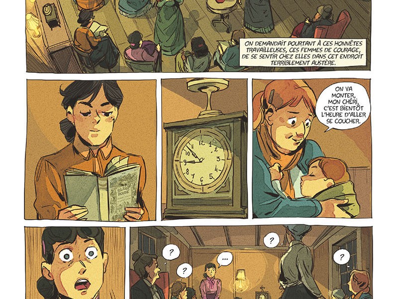 Le volume représente donc pleinement la protagoniste, avec tous les moyens disponibles : rythme, couleurs, dialogues et dessins. Nellie Bly était littéralement une aventurière, une pionnière de son temps. Cette nouvelle adaptation en bande dessinée explique bien le mode de vie imposé aux femmes diagnostiquées démentes à tort et qui parfois même le devienne. La dureté de leurs conditions est mise en valeur par un dessin alternant des couleurs vives qui marquent les brefs instants de joie et des teintes plus morose illustrant leurs tristesses et la déchéance. Cette bande dessinée n'est pas "seulement" une leçon d'histoire (bien que sa valeur historique soit très importante), mais incarne également une morale forte dont on peut s'inspirer. Elizabeth Jane Cochran est représentée visuellement par Carole Maurel. La dessinatrice maintient son style, tout en le revisitant légèrement et en le calibrant spécifiquement sur cette bande dessinée. Maurel est un auteure extrêmement sérieuse et professionnelle, avant de dessiner Nellie, elle s'est informée des us et coutumes de l'époque et la journaliste nous touche par son dévouement pour la cause des femmes à travers sa plume soignée. Les traits du visage des personnages sont également très expressifs, leurs émotions apporte un véritable avantage à cet ouvrage qui la différencie des autres adaptations.