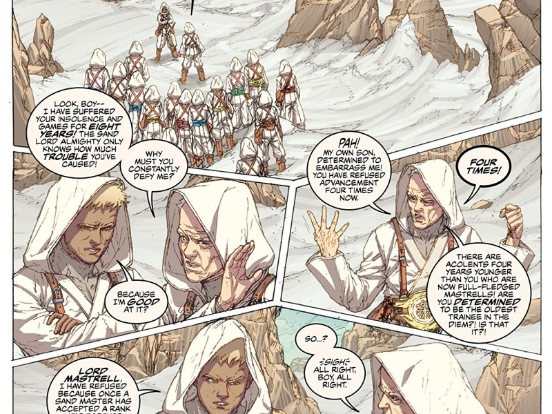 Brandon Sanderson est bien connu pour sa capacité à créer des mondes crédibles à partir des recoins les plus profonds de notre imagination et à placer le lecteur au cœur de chaque récit. Beaucoup de ces mondes qu'il construit, comme ses fans le savent bien, ont un lien tissé de la manière la plus étonnante possible : une collection de dix planètes qui, pour une raison mystérieuse et évolutive, suscitent leurs propres pouvoirs et capacités magiques parmi leurs habitants. White Sand n'est pas différent ; un mélange de magie et de culture qui ne manquera pas d'en étonner plus d'un, et de susciter d'autres conversations chez les Sanderfans. White Sand est le premier roman jamais écrit par Brandon Sanderson, inédit depuis près de 20 ans. Il a finalement été réécrit après avoir terminé Elantris, mais il est resté inédit. Après que Dynamite Publishing ait demandé à Brandon s'il avait ou non des œuvres inédites à adapter sous forme de bandes dessinées, il a proposé White Sand. Et voici le résultat : un beau mélange de dessin de Julius Gopez et de scénario de Rik Hoskin. Le dessin est particulièrement remarquable, car il s'intègre parfaitement au récit. Un travail au crayon avec des blancs ternes et des beiges peignent une scène rude, sablonneuse et très élaborée. Chaque personnage est instantanément reconnaissable, ce qui n'est pas chose facile si l'on considère que plusieurs personnages portaient la même tenue.