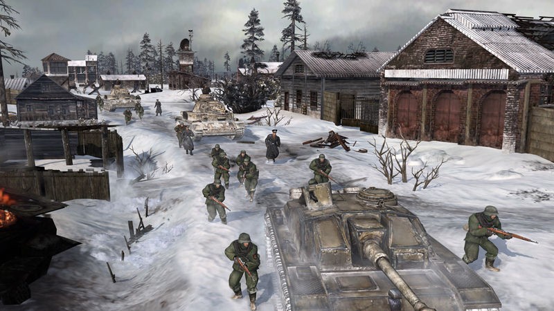![]() Plate-forme : PC Date de sortie : 25 Juin 2013 Editeur : Développeur : Genre : Stratégie Multijoueur : Oui Jouable via Internet : Oui Test par Nic0078/10 Après bien des retards, Company of Heroes 2 est enfin disponible. Retour au front.Décalé à plusieurs reprises, puis sans éditeur suite à la faillite de THQ, Company of Heroes 2 arrive enfin sur PC, sous la houlette de SEGA. Toujours développé par Relic Entertainment, le titre prend place durant la Seconde Guerre Mondiale, mais cette fois sur le front de l'Est, où l'on retrouve les plus célèbres batailles, à partir de 1941, et l'Opération Barbarossa qui a conduit les Nazis à envahir la Russie. L'intrigue débute donc sous forme de flash-back, où l'on retrouve le personnage d'Isakovich plongé dans le conflit de Stalingrad jusqu'à la victoire de l'Allemagne. Tel un Command & Conquer Alerte Rouge, vous pourrez donc réécrire l'histoire et vous engager dans de terrifiants combats, mâtinés de scènes cinématiques illustrant les faits marquants. En outre, les développeurs ont accentué le réalisme du jeu en proposant une intelligence artificielle encore plus réactive, et des conditions météo parfois extrêmes et qui influent réellement le déroulement sur le champ de bataille. Cependant, il n'est cette fois pas possible d'incarner toutes les forces en présence, et vous ne pourrez donc incarner uniquement l'Armée Rouge dans la campagne solo. La tactique est toujours au centre de CoH, avec une gestion revue de la ligne de mire des unités, ce que l'on nomme le TrueSight. Le gameplay demeure pour sa part assez similaire à ses prédécesseurs, et il vous faudra capturer des points de la carte pour remporter la partie. Ces objectifs désignent les ressources primaires de Company of Heroes, à savoir la main-d'œuvre, les munitions et l'essence, bien utiles pour recruter de nouvelles unités. Chacune d'entre elles disposent d'ailleurs de compétences spécifiques. Les ingénieurs sont les plus polyvalents sur le terrain et peuvent réparer (ou saboter) de nombreux éléments, les soldats d'élite peuvent lancer des grenades, les conscrits peuvent aller aider une unité sur le déclin, etc etc. Une variable d'importance est d'ailleurs à surveiller, la température. Les soldats ne peuvent pas rester trop longtemps sur le terrain, et doivent régulièrement rejoindre un abri ou faire une pause devant un feu. Qui plus est, la neige modifie forcément la physique, et il convient de surveiller attentivement son environnement pour ne pas subir une avarie du matériel, ou pour se retrouver au milieu d'un étang dont la glace commence à se fissurer. Un jeu complet.Le mode Theater of War permet de raconter d'autres grands moments du conflit sous la forme de nouveaux contenus jouables en solitaire ou en mode coopératif. Ce mode comporte dix-huit missions dans lesquelles les joueurs sont confrontés à des situations difficiles à surmonter, à des batailles contre un commandant ennemi au style de jeu unique contrôlé par l'IA et à des scénarios en mode coopératif. À la tête de l'Armée Rouge ou dans le camp allemand, vous visiterez différents lieux célèbres du Front de l'Est et participerez à certains des plus durs combats qui se sont déroulés cette année-là. Neuf missions uniques sont accessibles à chacune des factions, de quoi y passer plusieurs dizaines d'heures supplémentaires, et du contenu additionnel est d'ores et déjà en préparation. Mais Company of Heroes est également un jeu fortement axé sur le multijoueurs. Outre le classique escarmouche (jouable à quatre contre quatre) où l'Armée Rouge affronte les Nazis, on retrouve deux options de jeux supplémentaires, à savoir la Domination qui vous demande de récupérer certains points stratégiques sur la carte, et une seconde qui demande uniquement à détruire la base adverse. Bien évidemment, chaque partie permet d'accumuler de l'expérience, utile pour accéder à des bonus supplémentaires pour les unités, à des nouveaux skins, et même à des généraux additionnels aux capacités améliorées Sur le plan technique, Company of Heroes 2 propose un graphisme d'une grande qualité. Et même avec le zoom a son maximum, les textures sont parfaitement détaillés. La campagne vous permet d'ailleurs de revivre quelques grandes batailles, le tout introduit par de très jolies cinématiques et une bande son de bonne qualité. Le doublage français manque un peu de persuasion cependant. Malgré un nombre de paramètres très nombreux à gérer, la jouabilité du jeu demeure très accessible. Il est vrai que les développeurs vous expliquent étape après étape les possibilités tactiques du jeu. On notera également une intelligence artificielle de bon acabit et une aventure solo intéressante. Le multijoueur accueille des parties très dynamiques, même si l'Armée Rouge semble avoir un véritablement avantage sur le terrain (ce qui est aussi une réalité historique). VERDICT-Company of Heroes 2 est un très bon jeu de stratégie. Proposant une réalisation très élaborée, un confort de jeu sans faille et un jeu en ligne très prenant, ce titre n'oublie pas de proposer une campagne solo fort immersive, et un multijoueurs conséquent. |