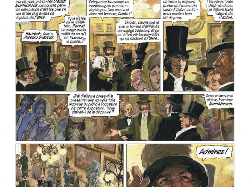 Le comte polonais Mieszko Skarbek apparaît dans le Paris de 1843. Il se présente au célèbre marchand d'art Daniel Northbrook comme extrêmement intéressé par les œuvres d'un peintre, Louis Paulus, décédé trop tôt. Northbrook, pour sa part, affirme qu'il a presque tout le travail de Paulus en sa possession. Le comte Skarbek veut faire la lumière sur 227 toiles de Paulus, car il s'avère qu'il est lui même le peintre que l'on pensait disparu. Il est revenu dix ans après sa mort présumée pour se venger de Northbrook, qui l'a manipulé et - du moins, le pensait-il - assassiné. Dans la deuxième partie, nous retrouvons plus ou moins la même chose, bien qu’il existe une histoire de pirates (y compris un trésor caché) autour des intrigues d’identité et de cour. La contribution de ce diptyque à l’histoire de la bande dessinée européenne est multiple. Yves Sente a trouvé, en plus de son existence dans l' édition, une légitimité définitive en tant que scénariste et s'est depuis développé en tant qu'écrivain régulier de Thorgal, XIII et Blake & Mortimer. Grzegorz Rosinski a quant à lui acquis la confiance nécessaire pour peindre Thorgal sur toile au lieu du style de dessin classique et réaliste en noir et blanc qui est ensuite coloré. Avec ce bundle intégral, qui peut facilement passer pour une édition de luxe, vous retrouverez en prime, le carnet de croquis du procès et des esquisses inédites de Paulus-Rosinski.
