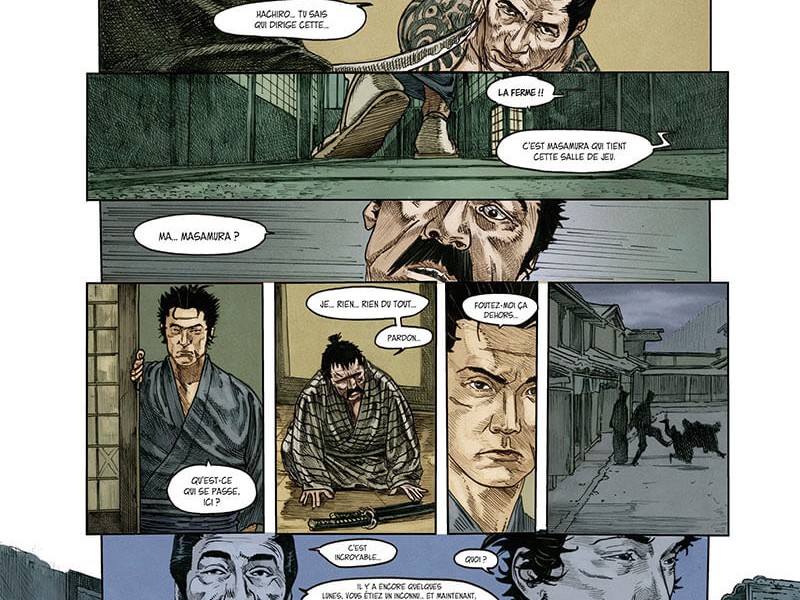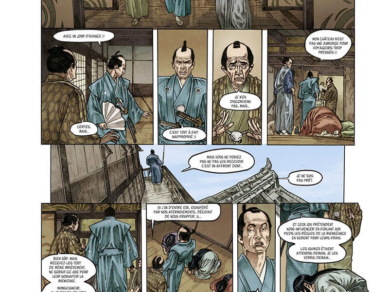 La prémisse vaut la peine d'être lue et nous n'avons certainement pas affaire ici à une énième BD de samouraïs. L'univers japonisant, les personnages et l'ambiance du récit sont très intéressants. Le personnage de Sadakïo s'avère obstinée et, par certains aspects, indifférente aux autres. Seul compte l'accomplissement de la promesse faite à son fiancé, son immense chagrin est le seul moteur de son comportement. Mais quand bien même elle trouverait le masque, il lui faudrait littéralement mettre les pieds en Enfer d'un point de vue mental, alors que son enveloppe physique resterait dans le monde des vivants, autant dire s'exposer au danger d'être attaqué pendant qu'elle est ailleurs. Masamura est davantage qu'un paysan curieux et débrouillard, nous découvrons son passé tragique et pourquoi il a choisi cette forme de couverture (il semble d'origine noble), alors qu'il opère des tâches de mercenaire dans ce second tome. L'histoire signée David Chauvel se révèle parfaitement construite, tandis que le superbe dessin de Roberto Ali compose d'admirables paysages et de singuliers personnages.