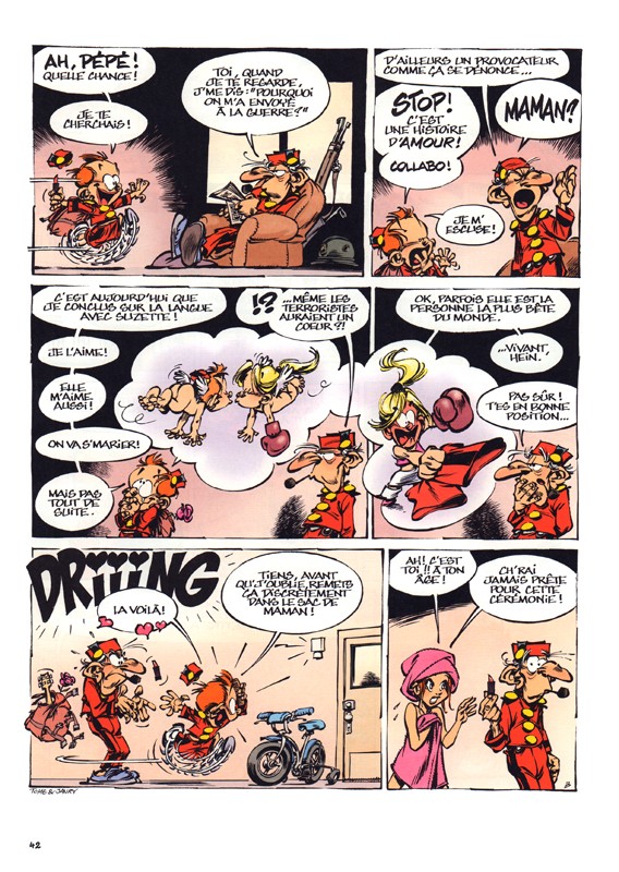 Entre ces deux histoires, il y a une autre série de gags dont les thématiques sont finalement très sérieuses. La façon d'y arriver, les manières, les comportements et les expressions des personnages, le grand plaisir de jouer et les détails, continuent à faire du Petit Spirou un personnage qui en vaut la peine. En attendant, nous avons développé une tendre pour M. Mégot, le professeur de gymnastique que vous n'auriez jamais voulu dans votre enfance. C'est une figure pathétique, à la fois touchante et pitoyable. D'ailleurs, Mégot apparaît sur vingt-deux pages de cet album. En dépit de son ivresse franche, de sa cigarette éternelle (pas encore interdite dans les BD par le politiquement correct), de ses tentatives de séduction totalement datées (c'est peut dire), il faut bien admettre qu'il sait mettre ses élèves au défi de manière créative. Le psychiatre qui suit le Petit Spirou est même près à signer une dispense de sport pendant six mois après qu'il lui ait raconté un rêve traumatisant à propos de Mégot. La question est de savoir si Janry peut maintenir la même finesse et le même équilibre entre le sensible et le grotesque sans son partenaire pendant de plusieurs décennies. Dans une interview, il a rassuré les nombreux fans du Petit Spirou, il va poursuivre la série tout seul.
