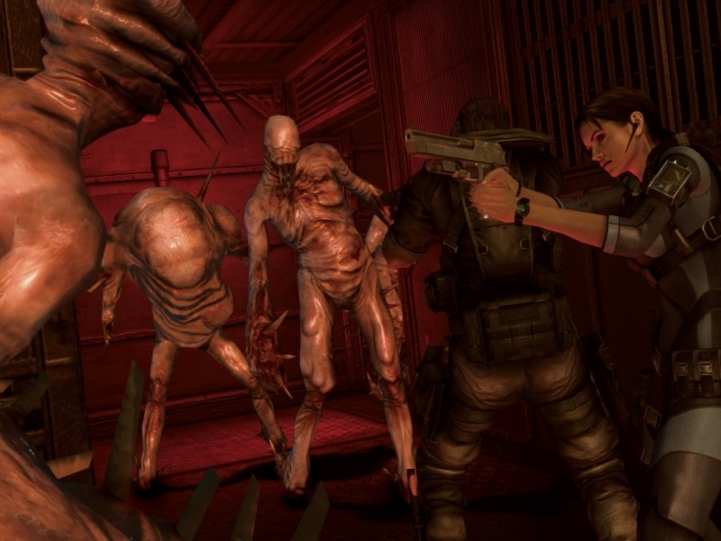 L'intrigue décrite dans Resident Evil Revelations nous ramène en 2005, entre les épisodes 4 et 5 de la série. Jill Valentine et son partenaire de la Bioterrorism Security Assessment Alliance (BSAA), Parker Luciani, doivent retrouver Chris Redfield et Jessica Sherawat, partis enquêter sur des phénomènes étranges en mer Méditerranée. Leurs dernières coordonnées GPS indiquent leur présence à bord d'un bateau de croisière, le Queen Zenobia, supposé être abandonné depuis longtemps. Dès les premières minutes de jeu, la tension est constante. Dans l'espace confiné du navire, de nombreux ennemis hostiles rodent, et un virus mortel, le T-Abyss, a déjà fait de nombreuses victimes. Initialement lancé sur Nintendo 3DS, Resident Evil Revelations intègre une structure parfaitement adoptée au support portable : La progression rappelle beaucoup une série télévisée, avec un résumé des évènements précédents au début de chaque nouveau chapitre (douze au total), sans compter que vous devrez fréquemment changer de personnage, afin de découvrir l'histoire sous différents angles, tout en cherchant les raisons pour lesquelles leurs ennemis ont toujours une longueur d’avance. Y aurait-il un traitre parmi vos rangs ? Quoiqu'il en soit, votre chef Clive R. O'Brian semble en savoir davantage qu'il ne l'exprime. Plus exotique, le duo Keith et Quint vous enverra en territoire nordique, de quoi assurer un certain dépaysement (et un petit côté Lost Planet également). Resident Evil Revelations marque surtout un retour aux sources horrifiques pour la série. Armé d'un stock restreint de munitions, il vous faudra avancer avec prudence dans les salles obscures du navire, les développeurs ayant multiplié les effets de surprises. En outre, le système de tir a également été amélioré, vous permettant de changer de perspective (de la troisième à la première personne). Il faudra même parfois résoudre des énigmes (certes beaucoup plus facile que dans les épisodes PSone), tout en gardant une trace des portes verrouillées dans vos notes de jeu. Équipé de votre scanner Genesis, vous pouvez désormais analyser vos ennemis, explorer des territoires et détecter les objets cachés. Lorsque le compteur atteint 100%, vous remporterez une arme supplémentaire. Signalons par ailleurs que les armes sont entièrement personnalisables, et que les coffres sont de retour pour gérer les équipements en surplus. Un titre complet.A l'image de Resident Evil 5, vous parcourrez souvent l'aventure en tandem. Le personnage secondaire est en mesure de se débrouiller seul, et ne bénéfice d'ailleurs d'aucune jauge de vie (contrairement au votre, où une vision trouble et très ensanglanté signifiera qu'il est temps d'utiliser une herbe verte). Néanmoins, on ne peut pas dire que vos alliés se montrent particulièrement utiles dans la partie. En effet, ils peuvent tirer sur les ennemis et quelque peu les ralentir, mais ils ne peuvent en venir à bout ! Résultat, il faudra se coltiner tout le ménage, et ce n'est pas toujours chose évidente lorsque vous êtes à proximité d'un monstre qui peut éliminer en un seul coup. Le nouveau mode Commando est jouable en mode solo ou co-op (en ligne). Vous pourrez y incarner Jill Valentine et Chris Redfield dans une foule de missions où il faudra vaincre des hordes d'ennemis. Gagnez des points bonus pour chaque ennemi dégommé et sélectionnez la mise à niveau de votre choix pour optimiser vos armes et faire progresser votre personnage. Pour cette édition console de salon, les développeurs ont ajouté quelques costumes ainsi que des personnages additionnels (dont le sémillant Hunk ou encore Rachel avant sa transformation). Techniquement à la hauteur ?Malgré quelques errements du côté du design des personnages, Resident Evil Revelations peut se vanter d'offrir une réalisation graphique assez convaincante. Ce passage à la haute définition embellit l'ensemble, même si quelques détails trahissent les origines nomades du jeu. L'ambiance se montre pour le moins éclectique, même si l'aventure se déroule essentiellement en pleine mer. On aura également plaisir de retrouver les monstres emblématiques de la série, accompagné de petits nouveaux engendrés par le terrifiant T-Abyss. Vous ne serez troublé par aucun bandeau chargement à l'écran durant les missions, Capcom ayant décidé de les dissimuler. Lorsque vous emprunterez un ascenseur ou changerez de compartiment sur le bateau, le jeu peut se mettre sérieusement à ramer. Il est donc conseillé de rester immobile durant ces séquences "intermédiaires". La jouabilité reprend quant à elle le schéma de contrôle des épisodes 4 et 5, avec quelques petits ajustements. Bonne nouvelle, il est permis de se déplacer tout en tirant, même si l'ensemble demeure un brin rigide, en tout cas davantage que dans RE 6. On retrouve quelques séquences d'actions interactives (QTE) et la possibilité de faire rapidement un 180°. On pourra par contre regretter le manque de lisibilité de la carte du jeu. Il est parfois très difficile de trouver sa destination, quand bien même vous seriez situé juste à côté. Pour sa part, la durée de vie s'avère un peu plus élevée qu'à l'accoutumée. La campagne solo occupera une dizaine d'heures, tandis que l'option Commando dépendra de votre passion pour les frags. Les missions proposées sont assez vite terminées, mais si vous souhaitez débloquer des récompenses (personnages, costumes, armes), il faudra y passer du temps. Le mode multijoueurs est d'ailleurs assez sympathique à parcourir, mais il aurait été appréciable d'introduire une option pour jouer en écran splitté. Notons que par rapport à l'épisode 3DS, nous retrouvons un nouvel ennemi, ainsi qu'un mode de difficulté supérieure (Enfer, ça ne s'invente pas). Enfin, la bande son est globalement très convaincante. Les musiques font preuve d'une belle variété des situations,