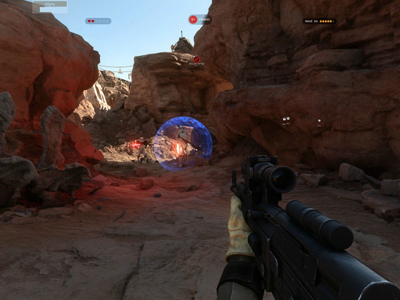 Editeur : Développeur : Genre : FPS Multijoueur : Oui Jouable via Internet : Oui Test par Nic0078/10 A quelques semaines du lancement de Star Wars 7 en salles, DICE nous propose un nouvel épisode de la saga Battlefront. Un retour attendu.Après des années d'absence, la série Star Wars Battlefront marque son retour, cette fois sous l'égide de DICE (Battlefield). Cet opus prend place durant la trilogie originale (épisode 4 à 6 donc) et vous pouvez y incarner soient les personnages de l'Empire soient les troupes rebelles. Même si le jeu est orienté multi-joueurs, des options solo et co-op local (en écran splitté) sont également proposées. Il sera donc possible de jouer au mode Survie où des vagues d'ennemis devront être annihilées pour accomplir la mission, mais aussi de s'entraîner à l'utilisation des nombreux véhicules de l'univers. Un mode 1 contre 1 est aussi de la partie, soit en tant que simple soldat, soit en tant que héros (Han Solo, Boba Fett, etc). C'était déjà le cas dans Battlefield 4, le scénario ne brille pas par son audace, et les scripts sont beaucoup trop nombreux pour combler les joueurs solitaires, même si on vous pourrez manipuler les fameux sabres lasers et faire appel au pouvoir de la Force façon Dark Vador ou Obi Wan Kenobi. Les crédits accumulés durant la partie seront utiles pour personnaliser son style de combat et il est aussi permis de modifier l'apparence de son avatar. Pour ce qui est du concept à proprement parler, il s'agit d'un jeu de tir à la première personne assez classique avec quelques objectifs à accomplir. Il est possible de basculer en vue troisième personne, hélas les animations des personnages deviennent rigides à souhait. Quant aux champs de batailles proposés, nous retrouvons, les planètes Hoth, Endor, Tatooïne et Sullust. Bien sur, certaines séquences phares des films seront de la partie. L'intelligence artificielle s'avère assez limitée et les adversaires vous cibleront encore et toujours. Autant dire qu'on se sent bien seul, et lorsqu'on découvre le respawn infini des ennemis dans certains passages, nous ne sommes pas loin de toucher le pompon. Il faudra environ six heures pour terminer l'aventure solo, et on a davantage l'impression d'avancer dans un tutoriel pour le multijoueur, que de vivre une campagne à grand spectacle. Une réalisation grand spectacle.