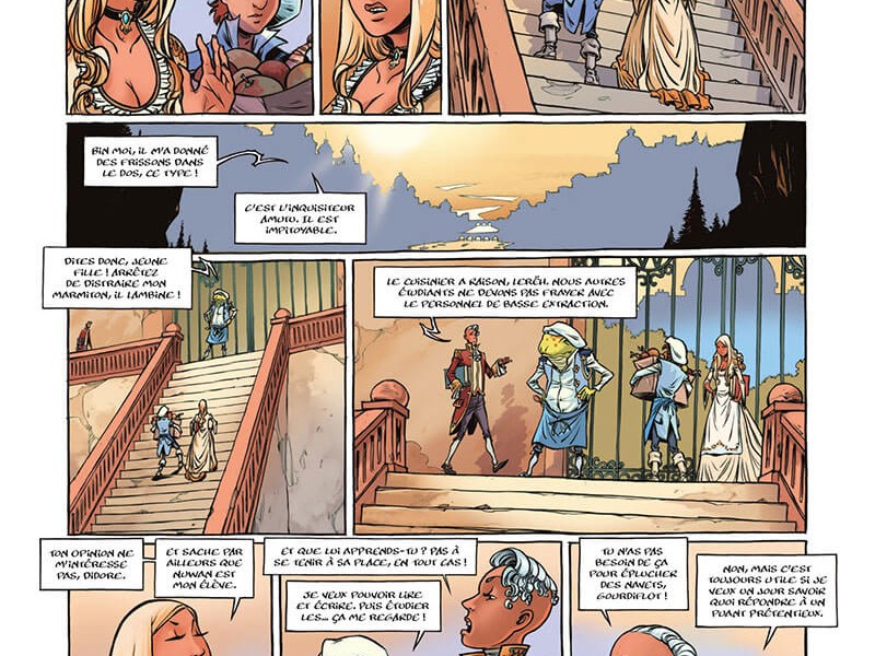 Première bande dessinée du nouveau label dédié à l’imaginaire dirigé par Christophe Arleston, celle-ci se composera d’un total de trois albums, une série courte, comme apparemment la plupart des projets à venir de cette nouvelle maison. Nouveau label, mais pas nouveaux acteurs, on y retrouve un trio habitué à nous produire des albums de qualité. Ainsi les traits d’Olivier Boiscommun mettent en valeur les différentes scènes qui permettront à l’intrigue de se mettre en place au fil de la lecture, le tout colorisé de façon toujours aussi douce par Claude Guth. Concernant le scénario, on reconnaît forcément la pâte de l’auteur, des notes de Lanfeust, un peu d’Ekhö, de l’humour, des personnages attachants et d’autres très caricaturaux, un mix qui se marie à merveille dans le monde de la fantasy. Un rythme assez calme dans la première partie du tome, puis tout s’accélère après un excès de zèle de notre personnage principal. A noter que la présente édition, la première, contient un carnet de croquis en fin d’album.