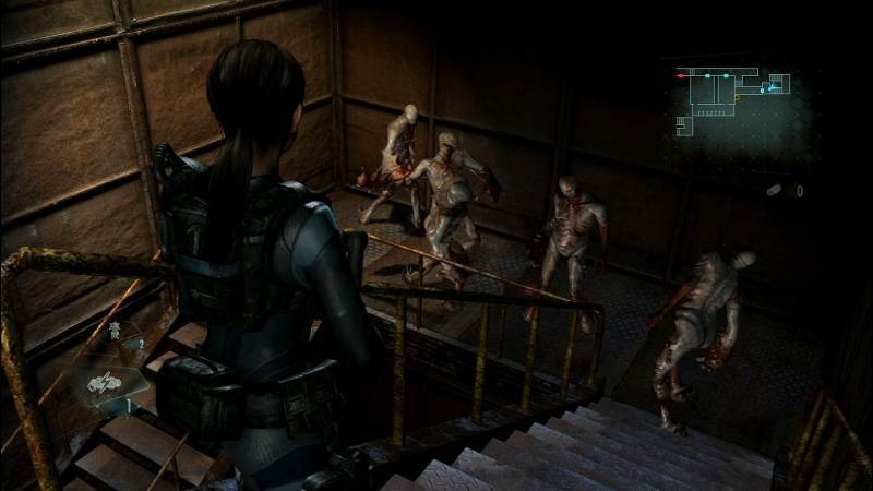 L'intrigue décrite dans Resident Evil Revelations nous ramène en 2005, entre les épisodes 4 et 5 de la série. Jill Valentine et son partenaire de la Bioterrorism Security Assessment Alliance (BSAA), Parker Luciani, doivent retrouver Chris Redfield et Jessica Sherawat, partis enquêter sur des phénomènes étranges en mer Méditerranée. Leurs dernières coordonnées GPS indiquent leur présence à bord d'un bateau de croisière, le Queen Zenobia, supposé être abandonné depuis longtemps. Dès les premières minutes de jeu, la tension est constante. Dans l'espace confiné du navire, de nombreux ennemis hostiles rodent, et un virus mortel, le T-Abyss, a déjà fait de nombreuses victimes. Initialement lancé sur Nintendo 3DS, Resident Evil Revelations intègre une structure parfaitement adoptée au support portable : La progression rappelle beaucoup une série télévisée, avec un résumé des évènements précédents au début de chaque nouveau chapitre (douze au total), sans compter que vous devrez fréquemment changer de personnage, afin de découvrir l'histoire sous différents angles, tout en cherchant les raisons pour lesquelles leurs ennemis ont toujours une longueur d’avance. Y aurait-il un traitre parmi vos rangs ? Quoiqu'il en soit, votre chef Clive R. O'Brian semble en savoir davantage qu'il ne l'exprime. Plus exotique, le duo Keith et Quint vous enverra en territoire nordique, de quoi assurer un certain dépaysement (et un petit côté Lost Planet également). Resident Evil Revelations marque surtout un retour aux sources horrifiques pour la série. Armé d'un stock restreint de munitions, il vous faudra avancer avec prudence dans les salles obscures du navire, les développeurs ayant multiplié les effets de surprises. En outre, le système de tir a également été amélioré, vous permettant de changer de perspective (de la troisième à la première personne). Il faudra même parfois résoudre des énigmes (certes beaucoup plus facile que dans les épisodes PSone), tout en gardant une trace des portes verrouillées dans vos notes de jeu. Équipé de votre scanner Genesis, vous pouvez désormais analyser vos ennemis, explorer des territoires et détecter les objets cachés. Lorsque le compteur atteint 100%, vous remporterez une arme supplémentaire. Signalons par ailleurs que les armes sont entièrement personnalisables, et que les coffres sont de retour pour gérer les équipements en surplus. Un titre complet.A l'image de Resident Evil 5, vous parcourrez souvent l'aventure en tandem. Le personnage secondaire est en mesure de se débrouiller seul, et ne bénéfice d'ailleurs d'aucune jauge de vie (contrairement au votre, où une vision trouble et très ensanglanté signifiera qu'il est temps d'utiliser une herbe verte). Néanmoins, on ne peut pas dire que vos alliés se montrent particulièrement utiles dans la partie. En effet, ils peuvent tirer sur les ennemis et quelque peu les ralentir, mais ils ne peuvent en venir à bout ! Résultat, il faudra se coltiner tout le ménage, et ce n'est pas toujours chose évidente lorsque vous êtes à proximité d'un monstre qui peut éliminer en un seul coup. Le nouveau mode Commando est jouable en mode solo ou co-op (en ligne). Vous pourrez y incarner Jill Valentine et Chris Redfield dans une foule de missions où il faudra vaincre des hordes d'ennemis. Gagnez des points bonus pour chaque ennemi dégommé et sélectionnez la mise à niveau de votre choix pour optimiser vos armes et faire progresser votre personnage. Pour cette édition console de salon, les développeurs ont ajouté quelques costumes ainsi que des personnages additionnels (dont le sémillant Hunk ou encore Rachel avant sa transformation). Techniquement à la hauteur ?Malgré quelques errements du côté du design des personnages, Resident Evil Revelations peut se vanter d'offrir une réalisation graphique assez convaincante. Ce passage à la haute définition embellit l'ensemble, même si quelques détails trahissent les origines nomades du jeu. L'ambiance se montre pour le moins éclectique, même si l'aventure se déroule essentiellement en pleine mer. On aura également plaisir de retrouver les monstres emblématiques de la série, accompagné de petits nouveaux engendrés par le terrifiant T-Abyss. Vous ne serez troublé par aucun bandeau chargement à l'écran durant les missions, Capcom ayant décidé de les dissimuler. Lorsque vous emprunterez un ascenseur ou changerez de compartiment sur le bateau, le jeu peut se mettre sérieusement à ramer. Il est donc conseillé de rester immobile durant ces séquences "intermédiaires". La jouabilité reprend quant à elle le schéma de contrôle des épisodes 4 et 5, avec quelques petits ajustements. Bonne nouvelle, il est permis de se déplacer tout en tirant, même si l'ensemble demeure un brin rigide, en tout cas davantage que dans RE 6. On retrouve quelques séquences d'actions interactives (QTE) et la possibilité de faire rapidement un 180°. On pourra par contre regretter le manque de lisibilité de la carte du jeu. Il est parfois très difficile de trouver sa destination, quand bien même vous seriez situé juste à côté. Pour sa part, la durée de vie s'avère un peu plus élevée qu'à l'accoutumée. La campagne solo occupera une dizaine d'heures, tandis que l'option Commando dépendra de votre passion pour les frags. Les missions proposées sont assez vite terminées, mais si vous souhaitez débloquer des récompenses (personnages, costumes, armes), il faudra y passer du temps. Le mode multijoueurs est d'ailleurs assez sympathique à parcourir, mais il aurait été appréciable d'introduire une option pour jouer en écran splitté. Notons que par rapport à l'épisode 3DS, nous retrouvons un nouvel ennemi, ainsi qu'un mode de difficulté supérieure (Enfer, ça ne s'invente pas). Enfin, la bande son est globalement très convaincante. Les musiques font preuve d'une belle variété des situations,