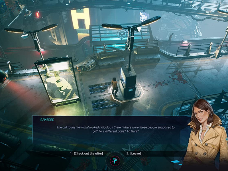 Oublions les possibilités diversifiées de construction de personnages de Disco Elysium, car dans Gamedec, on parvient à terminer le premier run en débloquant presque toutes les (rares) professions, se retrouvant ainsi dans certains cas à pouvoir accéder à toutes les options de dialogue. Bien évidemment, dans de nombreux cas, nous ne pourrons en choisir qu'une, excluant les autres, mais nous n'aurons de toute façon pas devant nous un gameplay capable de changer radicalement, comme cela peut arriver dans la majestueuse création de ZA/UM. Néanmoins, ce thriller peut être joué aussi bien, et avec son esthétique forte et sa narration bien définie dans les canons de la science-fiction cyberpunk, il parvient à nous divertir et à nous fasciner tout de même, également grâce à sa durée assez courte : Gamedec ne vous prendra pas plus de dix à quinze heures de votre temps, ouvrant la porte à la possibilité d'être rejoué plusieurs fois, en abordant des situations avec des choix alternatifs. D'un côté nous aurions aimé qu'il dure plus longtemps, mais d'un autre côté nous sommes heureux de nous être retrouvé avec un produit conçu de cette manière car Gamedec n'a pas qu'une seule fin et les voir toutes vous obligera forcément à rejouer l'histoire. Une aventure dont la durée globale est courte vous incitera donc plus facilement à recommencer sans problème majeur. Le titre d'Anshar Studios ne vous trompe pas et il ne vous suffira pas de charger la dernière sauvegarde pour terminer le jeu avec une autre fin car vous ne pourrez pas le faire, vous ne pourrez pas vraiment faire certains choix si vous n'êtes pas arrivé aux moments forts en en faisant d'autres qui ont été précédemment enchaînés. De ce point de vue, Gamedec fonctionne très bien. Si l'histoire est fascinante mais pas des plus originales, et si le gameplay est passionnant mais pas si profond, il faut dire que visuellement le jeu fait son sale boulot ; Gamedec : Definitive Edition est graphiquement très bien réalisé avec des environnements détaillés dans leur simplicité et des éclairages vraiment agréables à l'œil, grâce aussi au fait que les mondes du jeu sont loin d'être énormes, ce qui donne aux développeurs la possibilité de garder des détails de rendu élevés sans compromettre les performances de notre PlayStation 5. Le titre, entre autres, sur consoles ne présente pas les deux options désormais classiques de performance et de qualité graphique mais permet même de modifier les paramètres en détail comme sur PC et de verrouiller ou déverrouiller le frame rate. Nous avons pu profiter de l'aventure en réglant tous les détails au maximum et en verrouillant le frame rate à 60 FPS.
