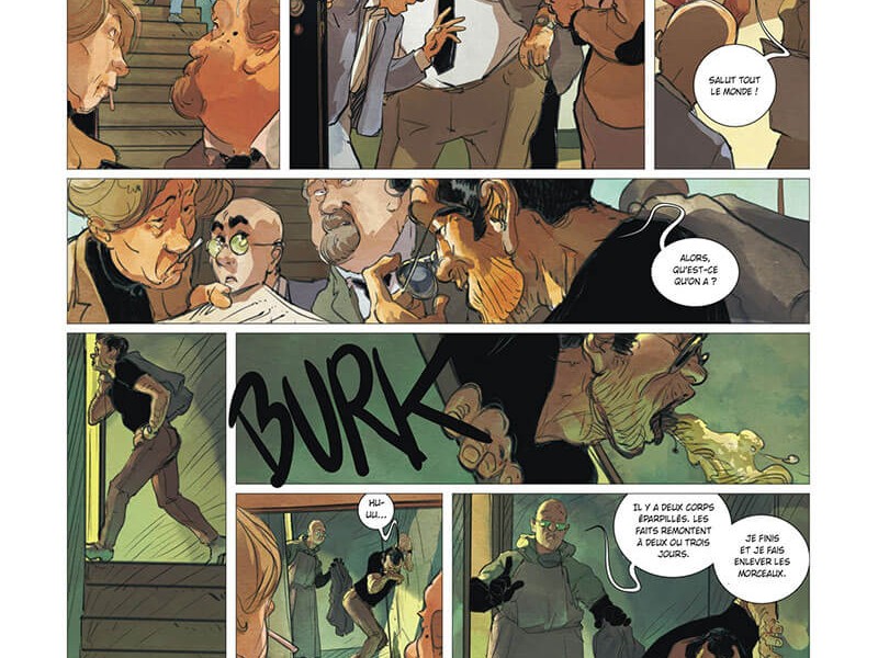 Brigade Verhoeven est la deuxième adaptation de la tétralogie de Pierre Lemaitre, ce volume se focalise sur le roman "Irène" et la chronologie des événements a été revue pour donner davantage de rythme à la bande dessinée. Irène est en réalité le nom de l'épouse de Verhoeven et il est clair que le lecteur sait, dès le début, qu'elle sera un personnage clé de l'ouvrage. Cela rend la tension presque insupportable mais aussi totalement convaincante. Du côté de la police, nous retrouvons le commissaire Verhoeven, présenté comme discret et solitaire (à noter qu'il ne mesure que 1,45 m), Louis le riche élégant, Armand le radin et Jean-Claude, le coureur de jupons du groupe. Il faut noter que cette histoire n'est pas pour les âmes délicates, elle s'avère plutôt violente même si la brutalité semble appropriée au récit. Le dessin de Yannick Corboz (L'Assassin qu'elle mérite) propose des personnages bien travaillés et un style semi-réaliste de bon aloi.